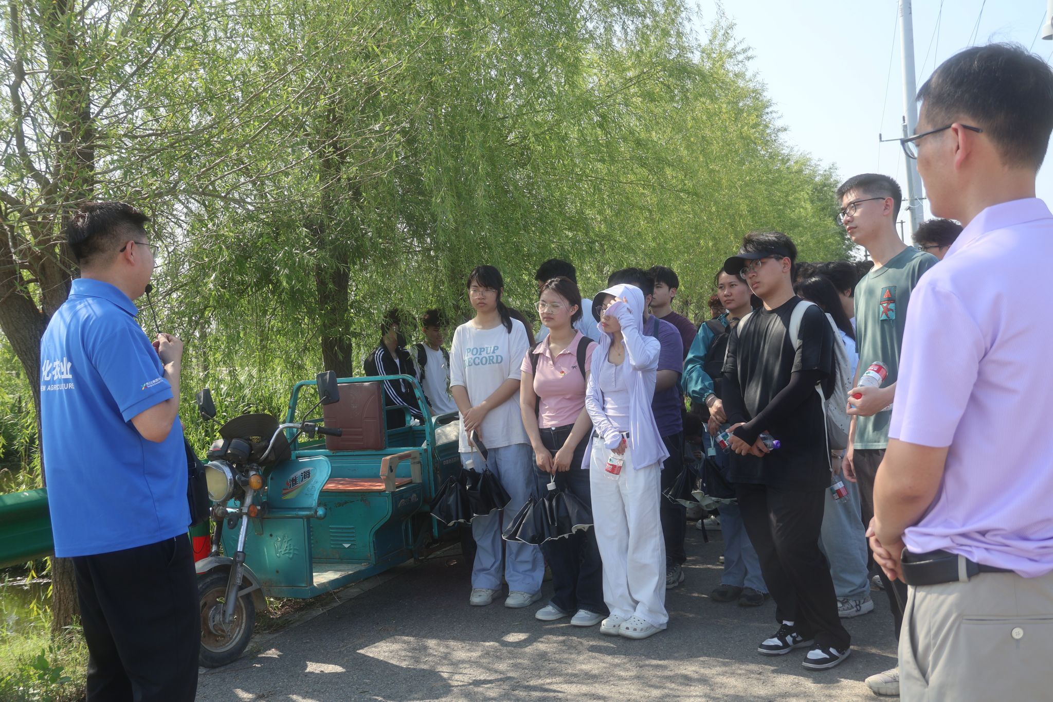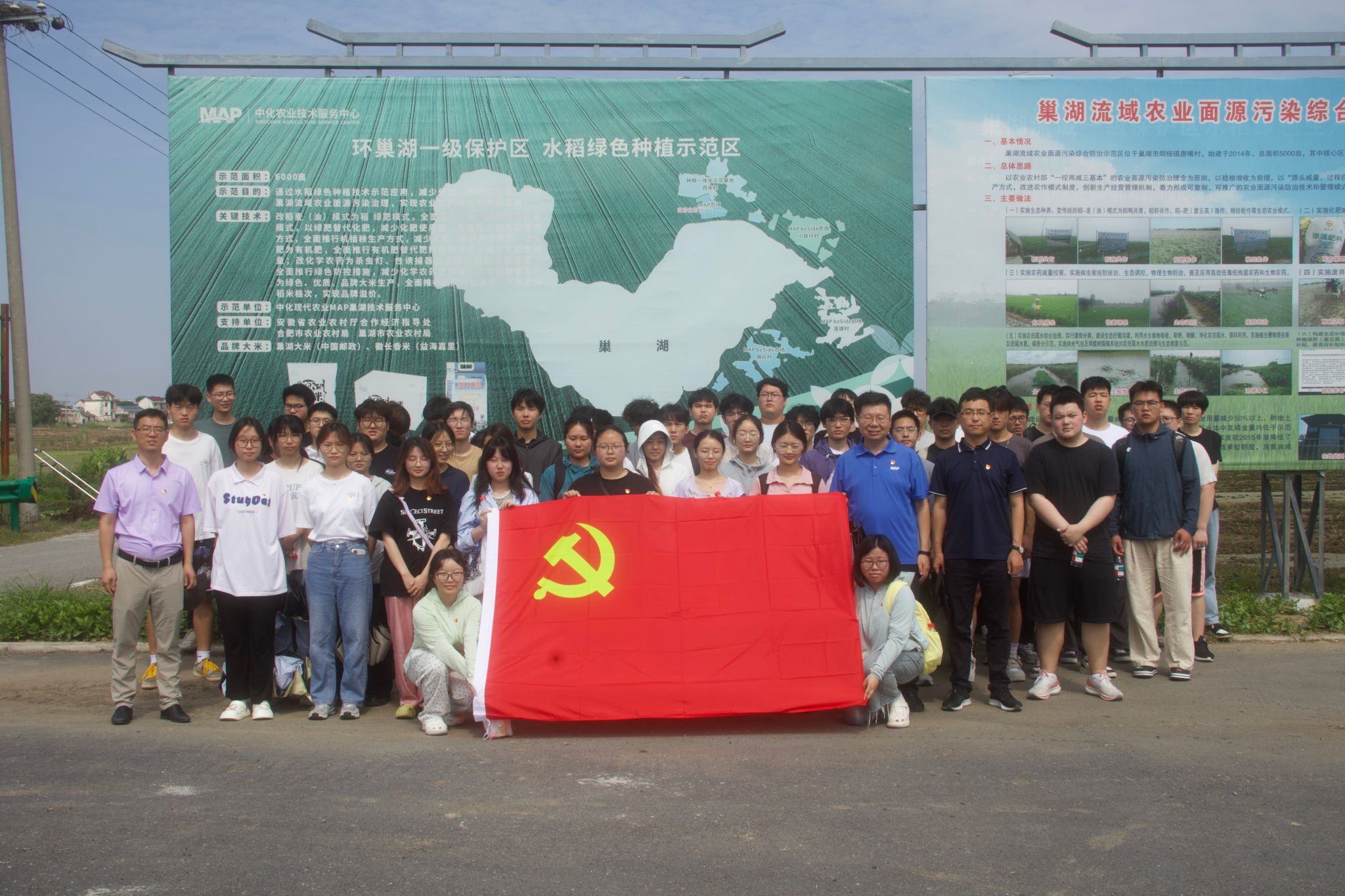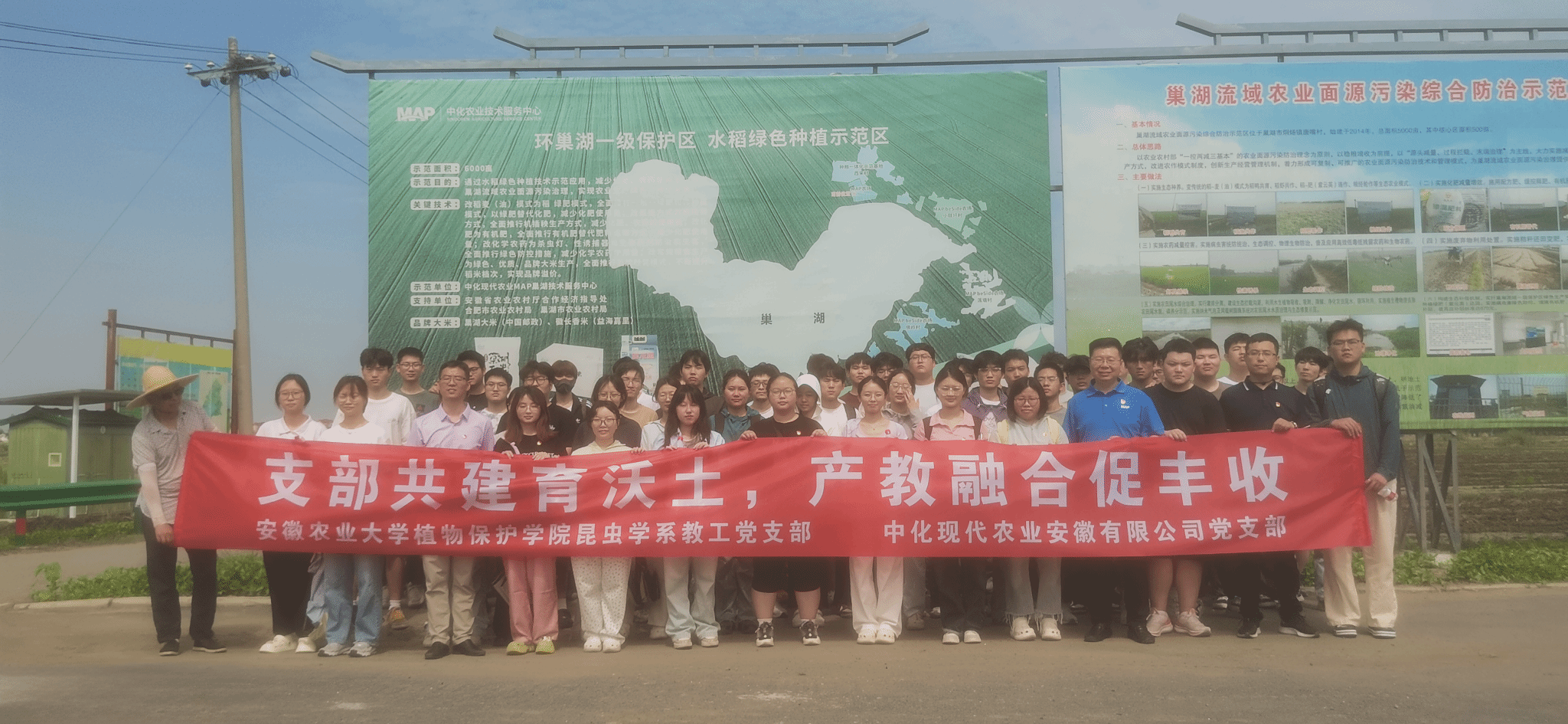 本网讯 6月5日,学院昆虫学系教工党支部联合中化现代农业安徽有限公司党支部,带领2022级智慧农业专业学生,共同开展“支部共建育沃土 产教融合促丰收”主题实践活动。学院昆虫学系教工党支部书记李茂业教授、智慧农业专业指导教师陈飞飞博士、中化现代农业安徽有限公司周海庭书记、张文建经理和李元斌等参加了此次活动。