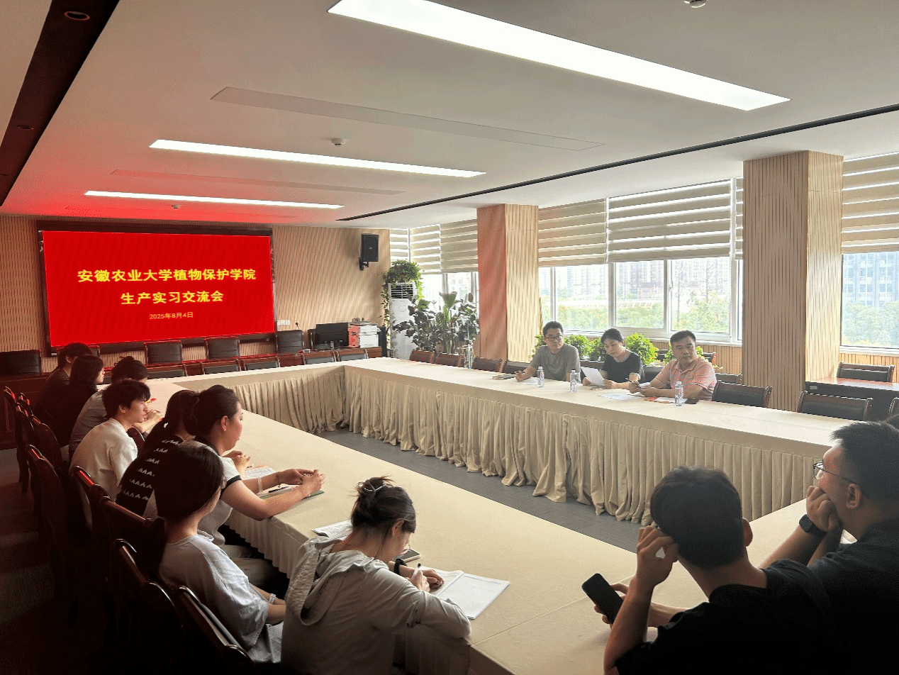 本网讯 结合2025年暑假生产实习巡查工作安排,8月4日至5日,由廖敏教授带队,黄勇副教授、王成阳老师一行组成的实习工作组,先后赴安徽省农业科学院植物保护与农产品质量安全研究所、合肥智慧农业谷公司、铜陵普济圩农场等3家企事业单位开展实地调研。期间,本实习工作组通过专题座谈交流、深入企业及其示范基地等方式,重点考察了当地水稻等主要农作物的病虫草害发生趋势与绿色防控技术应用现状。
