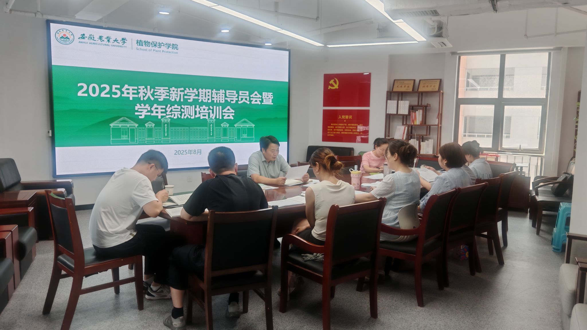 本网讯 8月29日上午,学院党委副书记汪小强在勤业楼1501会议室主持召开新学期辅导员工作会,研究部署迎新、学生资助、学年综测及评奖评优系列工作。