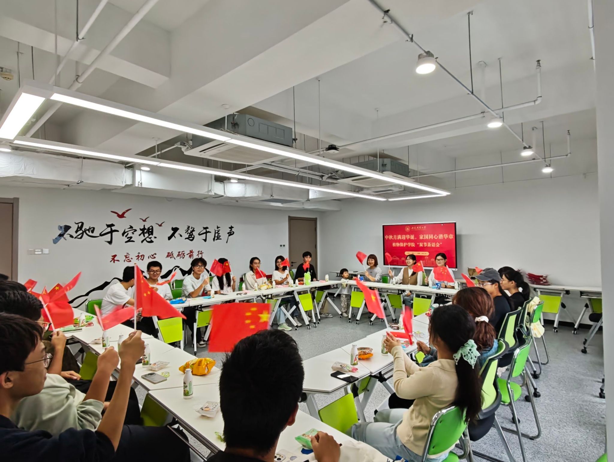 本网讯 金秋送爽,丹桂飘香,在中秋与国庆双节交汇的美好时节,学院于10月1日在勤业楼1405室开展了“中秋月满迎华诞,家国同心谱华章”双节茶话会活动,邀请留校学生欢聚一堂,共庆佳节、共话家国。