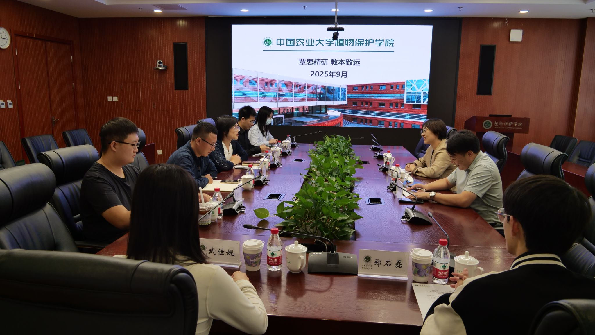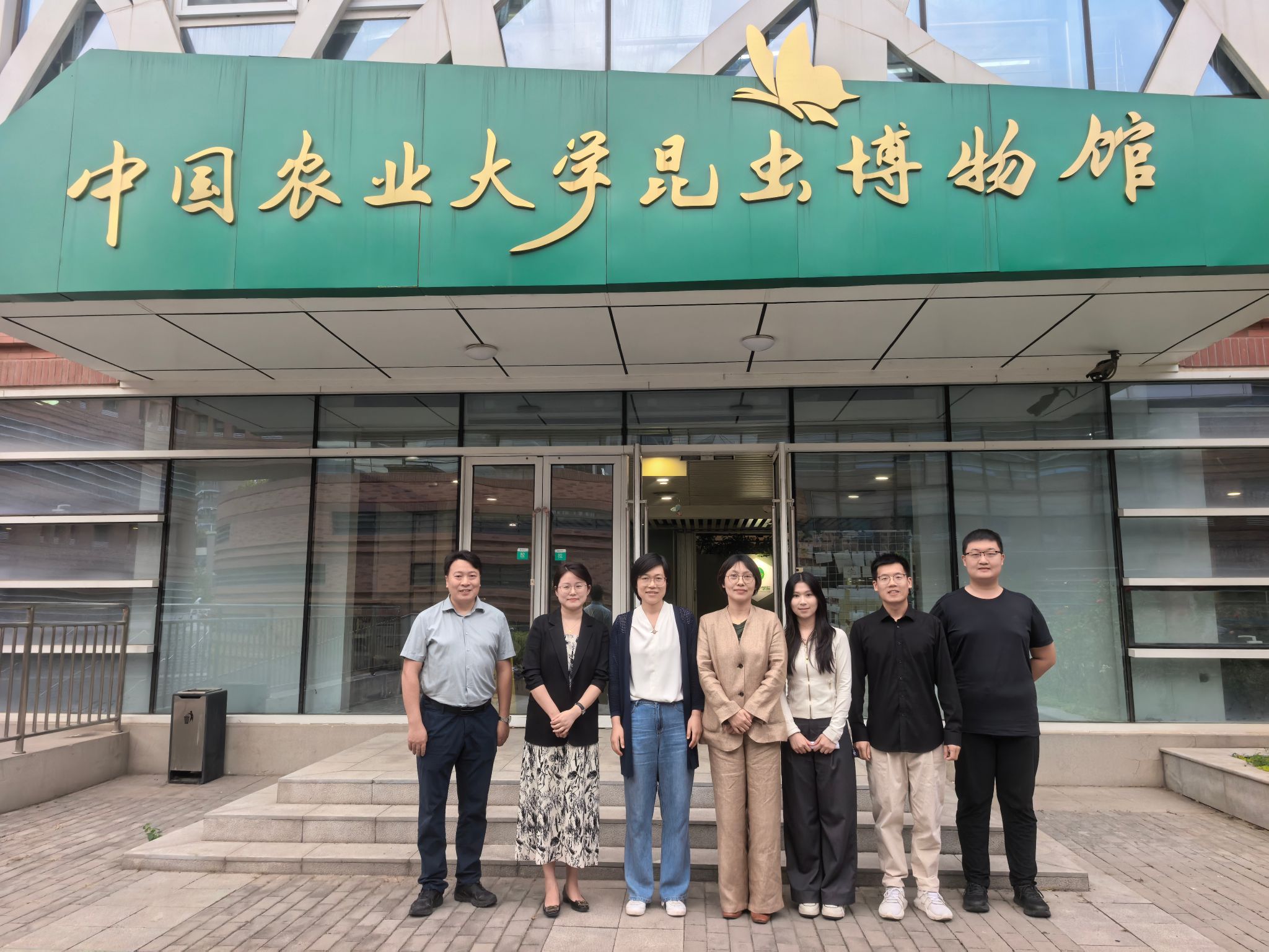 学院赴中国农大植保学院学习交流 发布时间:2025-09-28 浏览次数: 本网讯 9月26日,学院党委书记刘柳、党委组织部副部长陶佳、学院党委副书记汪小强赴中国农业大学植物保护学院调研,对接推进“1+5”农业科技创新联盟事宜,交流党建引领事业发展、党建品牌创建、三全育人、学生工作、文化建设等方面工作。中国农业大学植物保护学院党委书记刘姝言热情接待了刘柳一行。座谈交流会后,刘柳一行参观了中国农业大学昆虫博物馆。