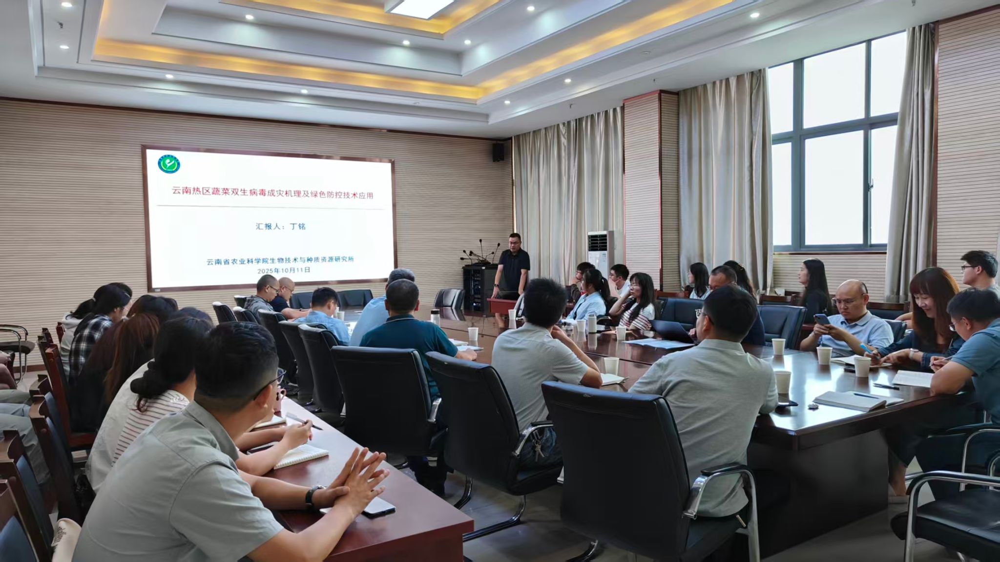 丁铭系统介绍了双生病毒在云南热区的发生与流行规律、致病与成灾机理及其对蔬菜产业构成的严重威胁,围绕团队在蔬菜双生病毒研究领域的最新进展作了详细报告,同时以案例形式分享了团队在绿色、可持续防控关键技术方面的创新与应用成果。整个报告内容翔实、逻辑清晰,既有理论深度,又紧密结合生产实践,为解决农业生产中的双生病毒防控难题提供了重要的思路和方法,引起了与会师生的热烈讨论。