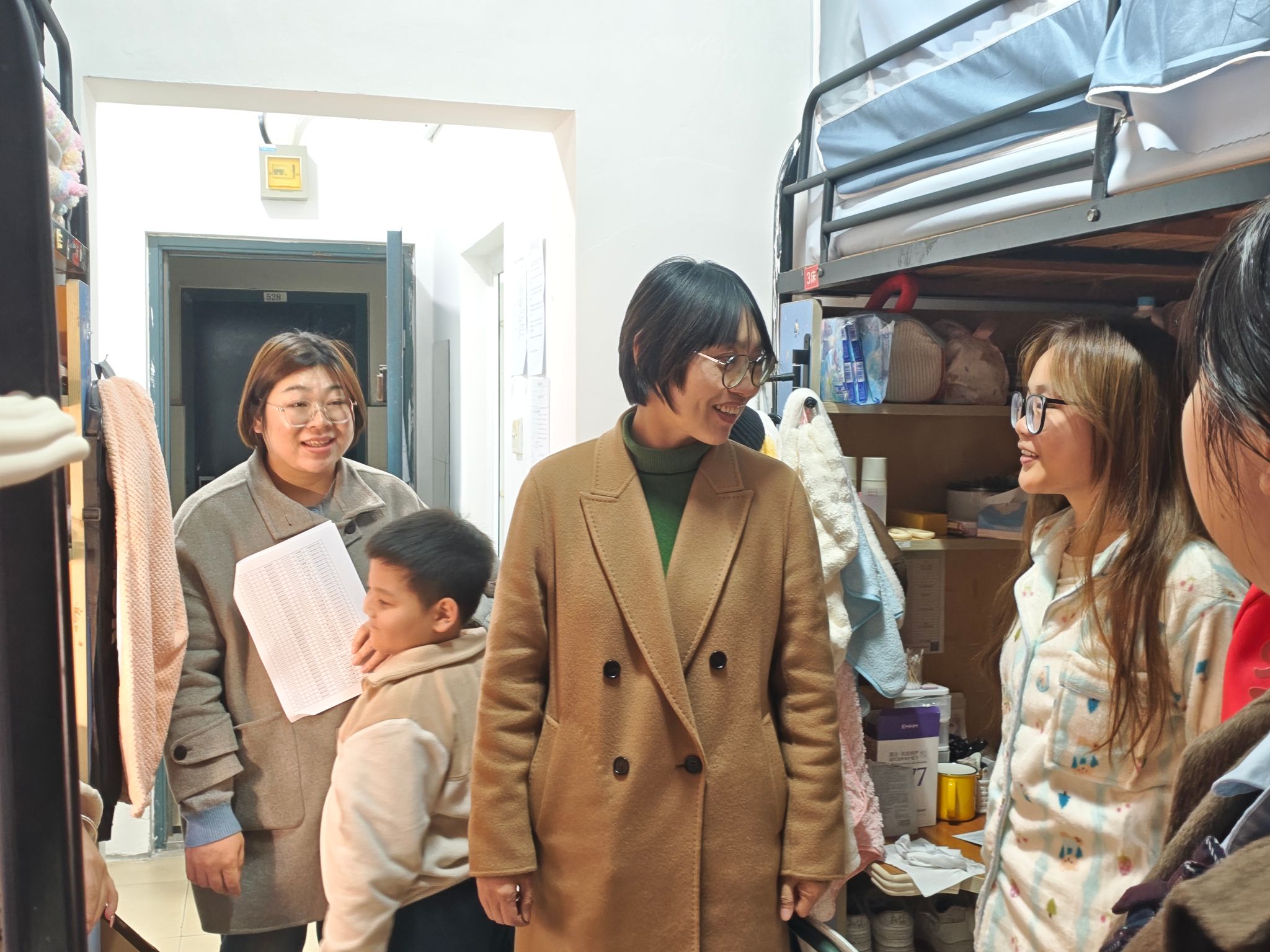 “最近学业可有什么压力?”“有没有遇到什么困难需要学院协助解决?”在2025级新生宿舍,院领导与老师们亲切询问学生的学习生活情况,通过深入交流,不仅了解到新生的实际需求,还着重强调了安全工作的重要性,提醒同学们提高防诈骗意识,注意用电、交通、财产安全。同时,老师们还提醒学生要遵守课堂纪律,把班风学风建设好,并对他们在学习生活上的疑问进行了现场解答。