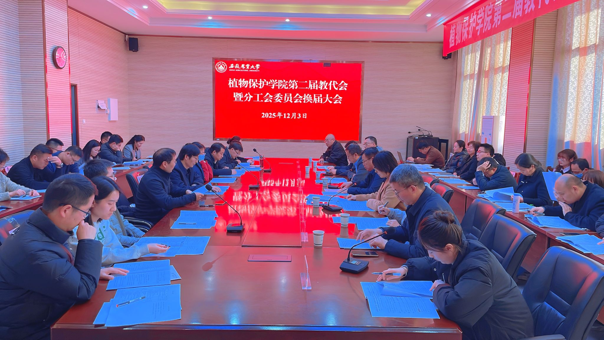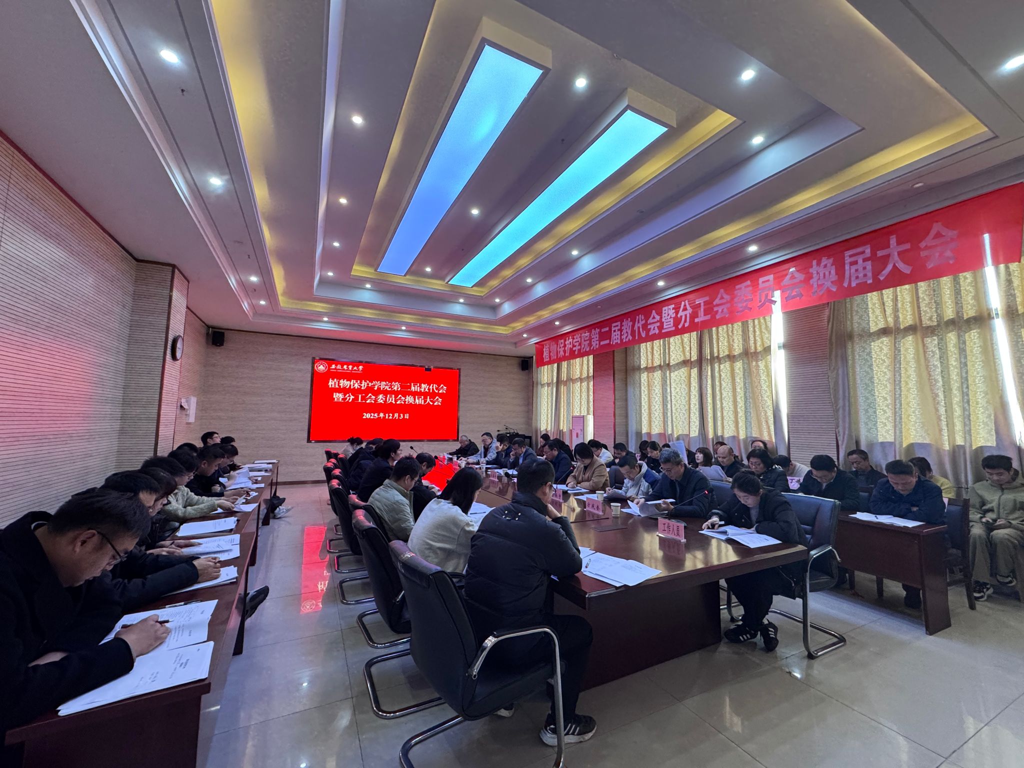本网讯 12月3日下午,植物保护学院在中西部综合楼1213室召开第二届教代会暨分工会委员会换届大会。校党委常委、副校长江海洋、学院领导班子成员以及教职工代表出席会议,学生代表和退休教师代表受邀列席会议,会议由学院党委书记刘柳主持。