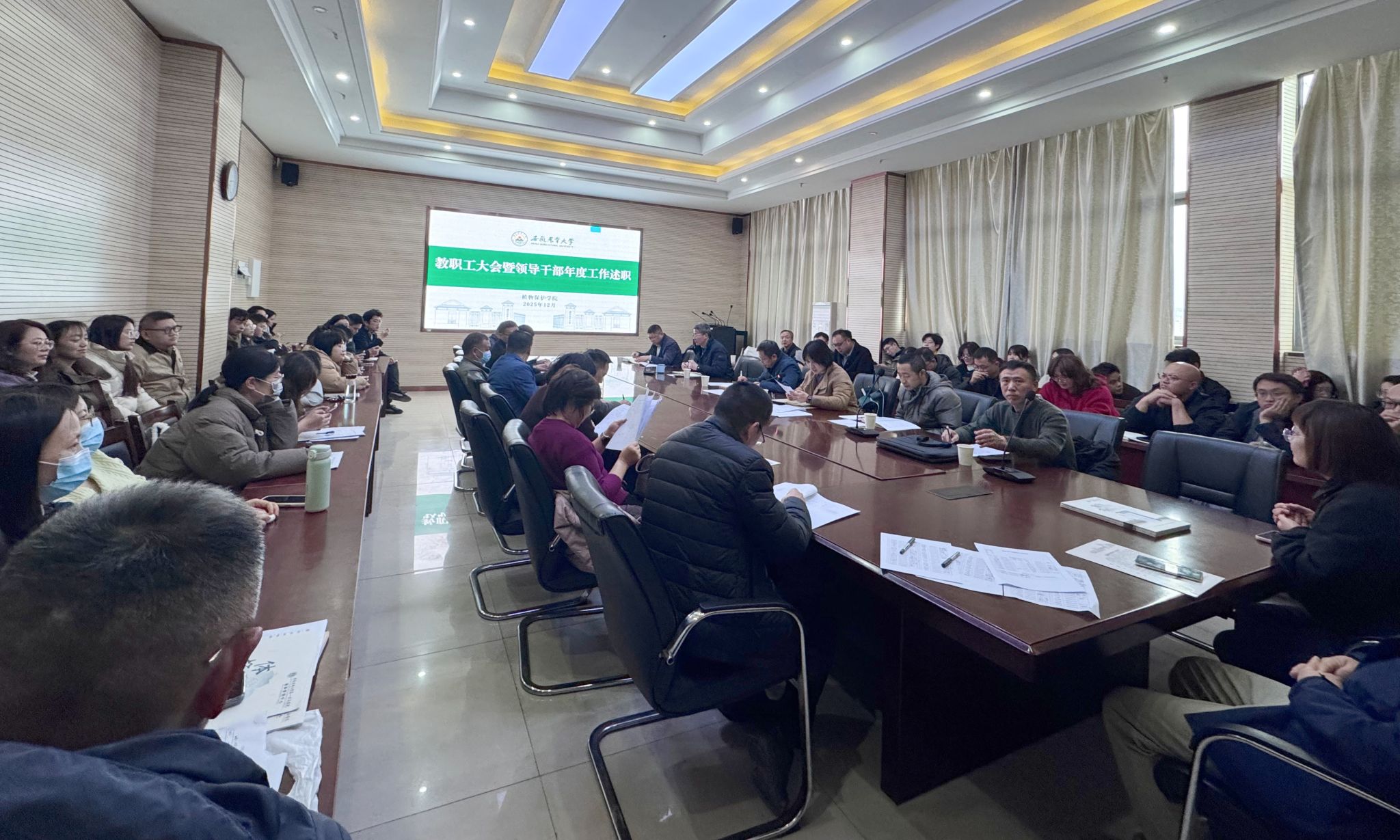 本网讯 12月31日下午,学院教职工大会在中西部楼1213会议室召开,院党政领导班子及全体教职工参加会议,会议由学院党委书记刘柳主持。
