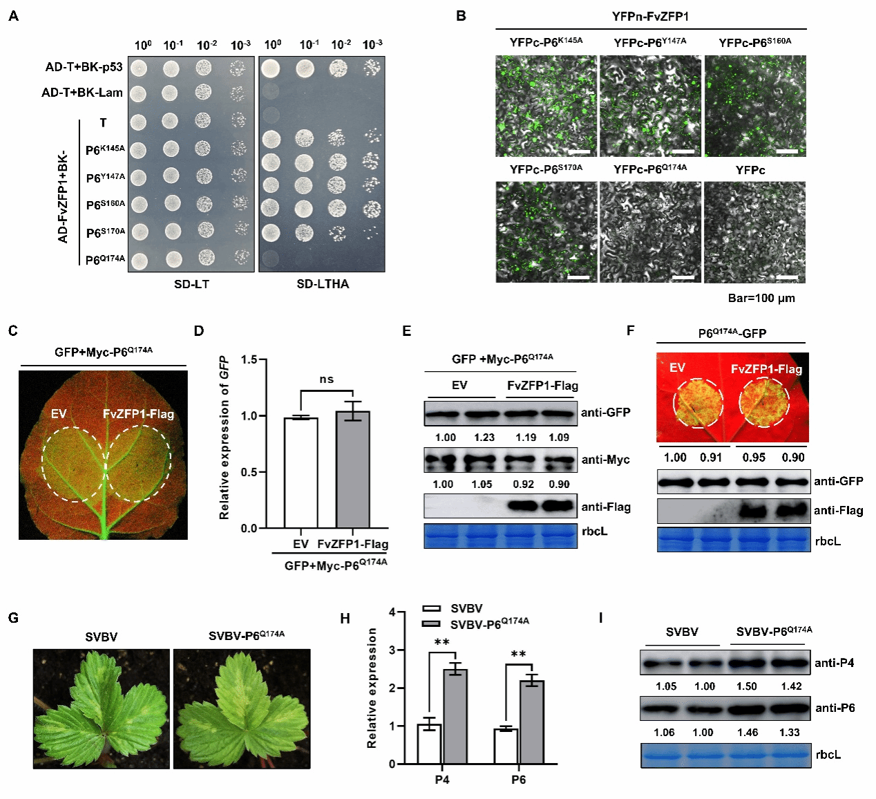 SVBV是一种环状双链DNA病毒,严重影响草莓产量和品质,编码的P6蛋白是沉默抑制子、症状决定因子,还能反式激活病毒下游RNA翻译,是促进病毒成功侵染的关键蛋白。本研究利用P6蛋白筛选出一种锌指蛋白FvZFP1,过表达FvZFP1蛋白可诱导26S蛋白酶体途径降解P6蛋白,破坏P6蛋白沉默抑制子功能,抑制病毒侵染。进一步研究发现,FvZFP1具有E3泛素连接酶活性,体内体外均可促进P6泛素化降解,P6 Gln-174和FvZFP1 Glu-146是二者互作的关键氨基酸,FvZFP1促进P6的泛素化降解依赖于二者互作。此外,FvZFP1可与SVBV启动子结合,抑制SVBV启动子的转录活性,降低病毒复制水平。这一成果成功揭示了植物应对双链DNA病毒侵染的新机制,为草莓抗病分子育种与绿色防控提供了新的策略与基因资源。