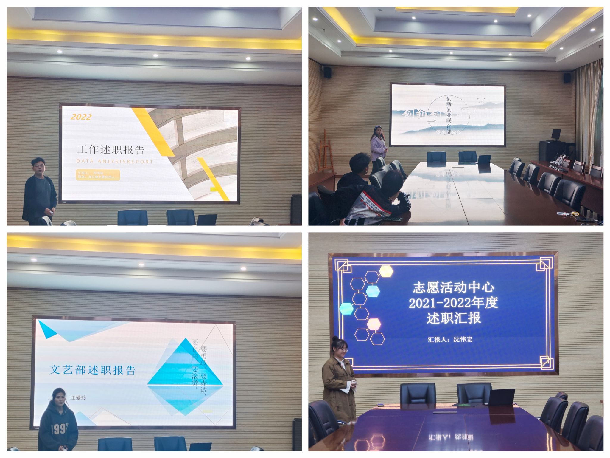 会上,学生分会(研究生分会)主席团成员、各部门主要负责人依次述职。主要从思想政治、道德品行、学习情况、工作成效等四方面总结工作开展情况,对工作中存在的问题与不足进行认真剖析,并明确了下一步的工作计划及改进方向。会后,参会体成员根据述职内容对述职人进行了民主评议。