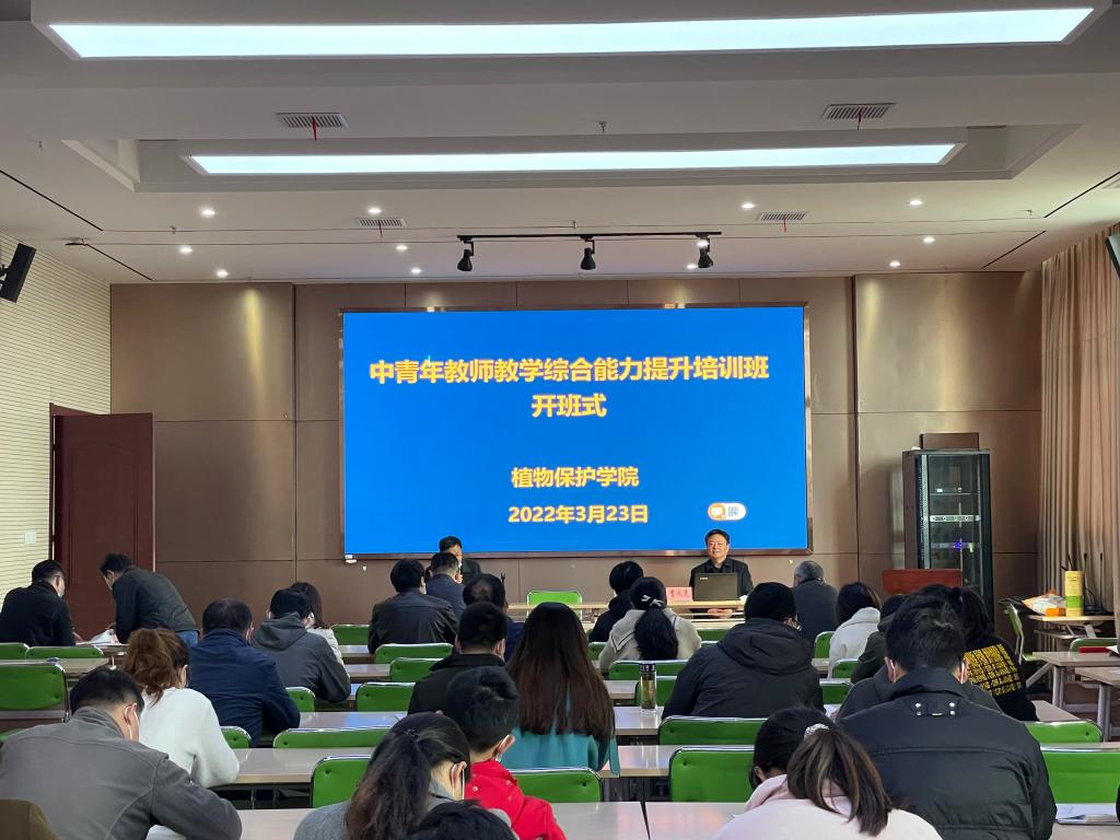 本网讯 3月23日下午,植物保护学院中青年教师教学能力提升培训班在1201报告厅正式开班。教务处处长曹成茂应邀为学院全体教职工作专题辅导报告。开班式由学院常务副院长潘月敏主持。