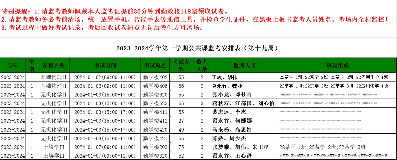 2023-2024学年第一学期第19周公共课监考安排表