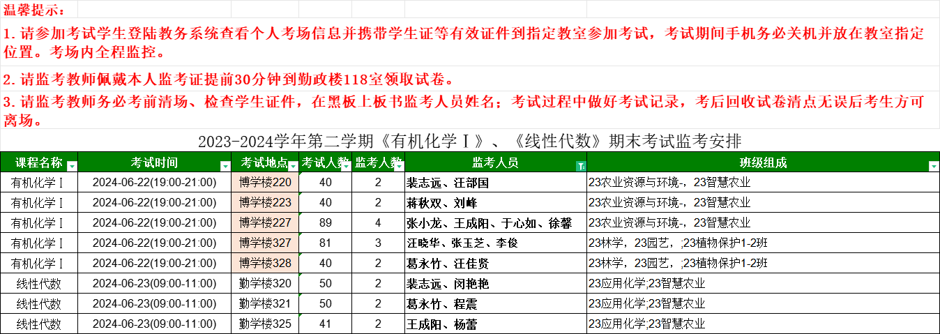 【考试安排】2023-2024学年第二学期第17周公共课考试监考安排表