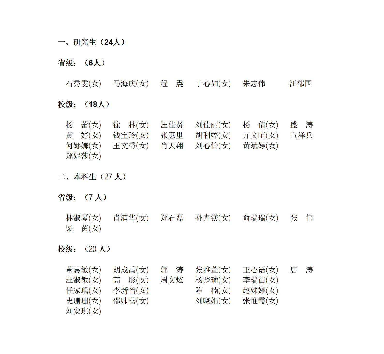 关于 2025 年省级、校级双优生推荐名单的公示 发布时间:2025-03-05 浏览次数: 根据《关于开展 2025 年安徽省高等学校优秀毕业生评选推荐工作的通知》和《安徽农业大学关于开展 2025 年省级、校级优秀本科 毕业生评选工作的通知》等文件要求,经学生个人申请、班级评审并在班级内部公示后,经学院党委会审议、党政联席会审定,现将推荐 名单公示如下。公示期内如有异议,请于3月7日下午下班前,与学院党政办裴老师联系,办公地址:研究生公寓B楼1503室,联系电话:0551-65786321,邮箱:zbxy@ahau.edu.cn。植物保护学院2024 年 3 月 5 日