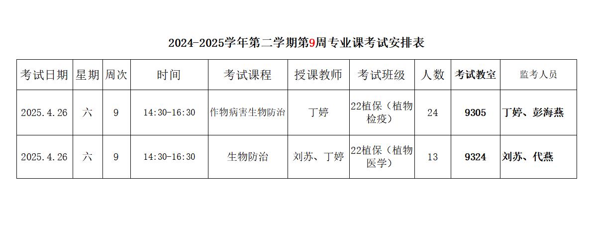 【考试安排】2024-2025学年第二学期第9周专业课考试安排