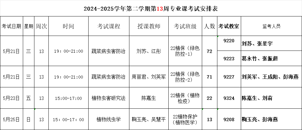 【考试安排】2024-2025学年第二学期第13周专业课考试安排