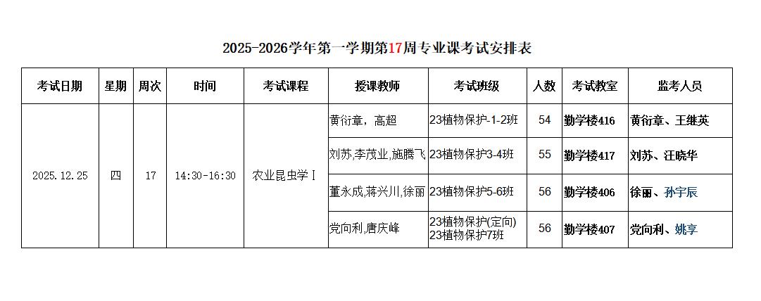 【考试安排】2025-2026学年第一学期第17周考试安排