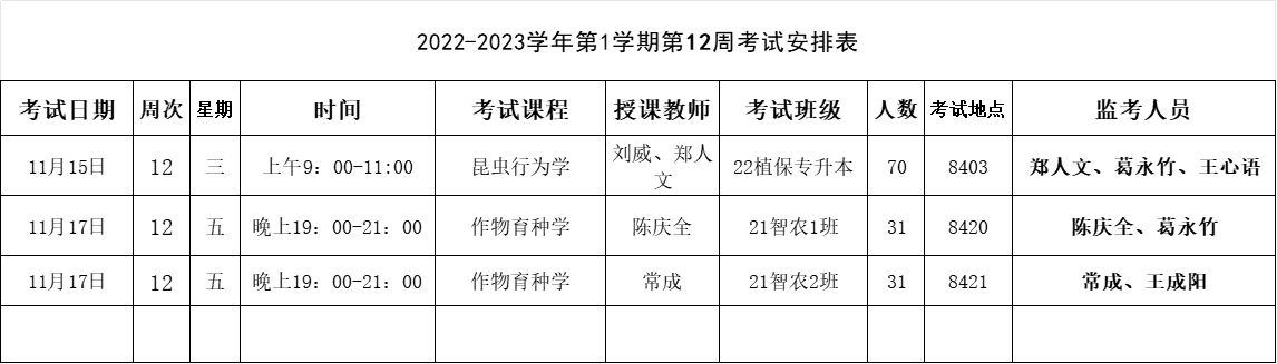 【考试安排】植物保护学院2023-2024学年第一学期第12周考试安排表