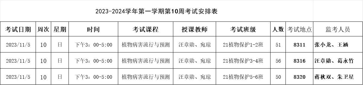 【考试安排】植物保护学院2023-2024学年第一学期第10周考试安排表