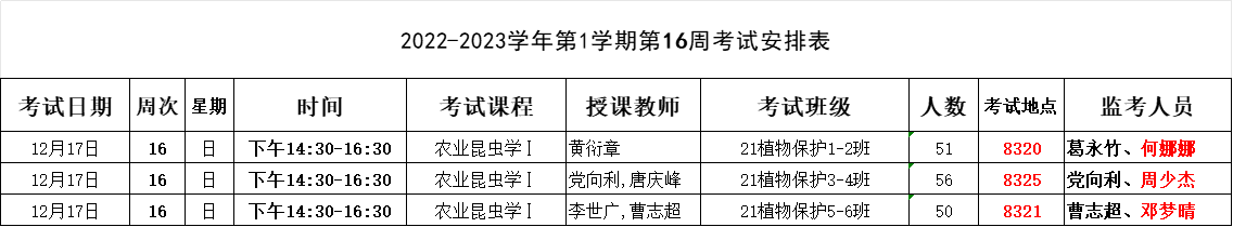 【考试安排】植物保护学院2023-2024学年第一学期第16周考试安排表