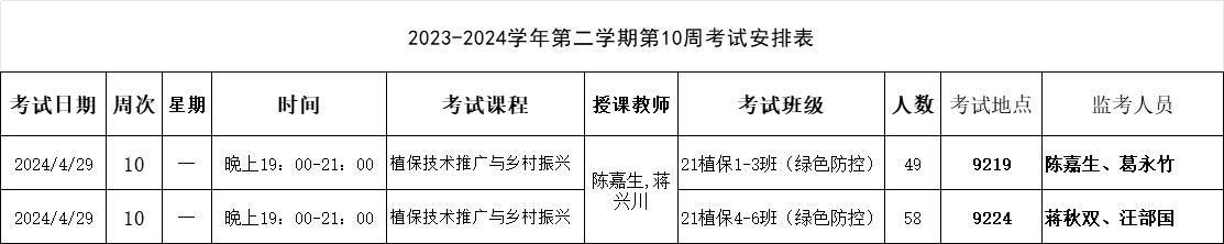【考试安排】植物保护学院2023-2024学年第二学期第10周考试安排表