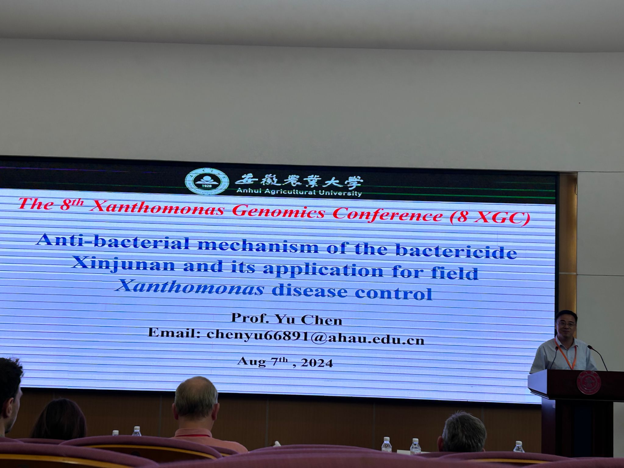 我院陈雨教授受邀作了题为Anti-bacterial mechanism of the bactericide Xinjunan and its application for field Xanthomonas disease control的大会报告。报告了通过Tn-seq、RNA-seq等多组学联合分析技术筛选与鉴定黄单胞菌必须基因、辛菌胺靶标基因与抗性基因,解析杀菌剂辛菌胺影响黄单胞菌能量合成及群体感应系统的机制及辛菌胺对水稻细菌性条斑病、桃细菌性穿孔病防控关键技术研发等,并在现场进行了广泛交流,为推动黄单胞菌病害可持续防控提供了宝贵的思路与方向。(文/图/编辑 赵玲玲 预审/唐庆峰 审核/刘柳)