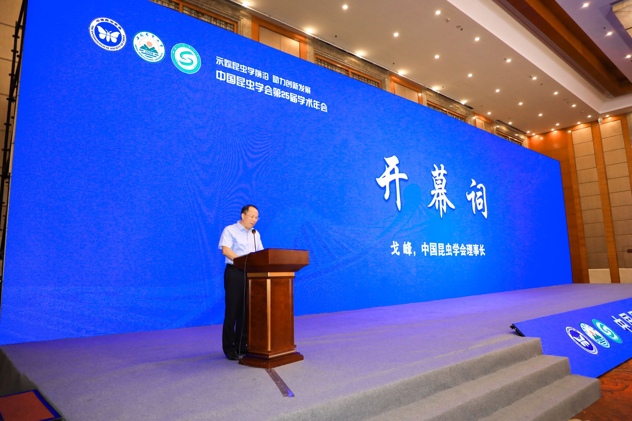 戈峰致开幕词。他介绍了学会成立80多年来的发展历程。他指出,本次年会以“示踪昆虫学前沿 助力创新发展”为主题,既是对我国昆虫学研究成果的一次全面检阅,更是推动学科交叉融合、谋划未来发展的重要平台,希望各位参会代表能够珍惜这次难得的学习交流机会,积极互动、畅所欲言,在思维的碰撞中激发灵感,在学术的交流中共同进步。