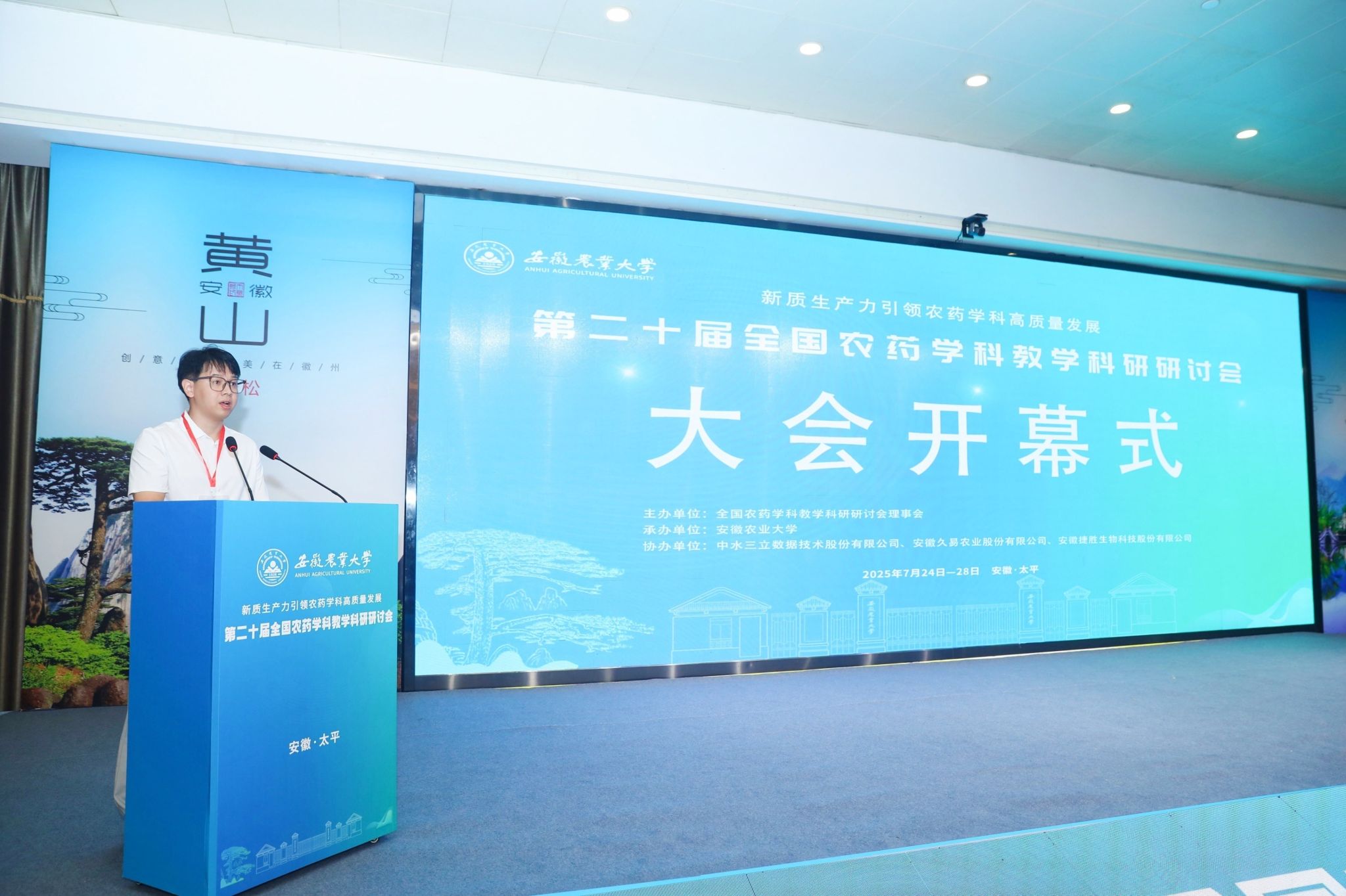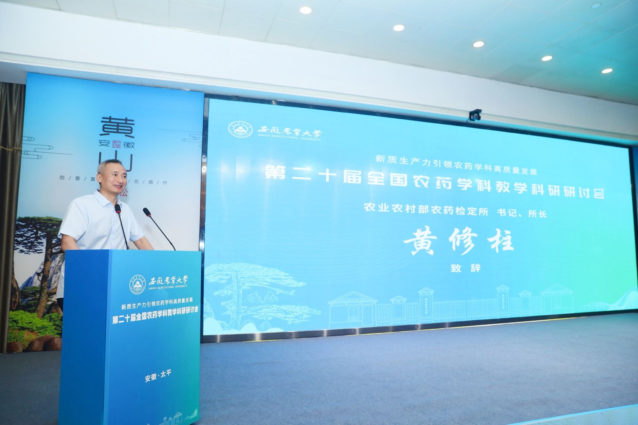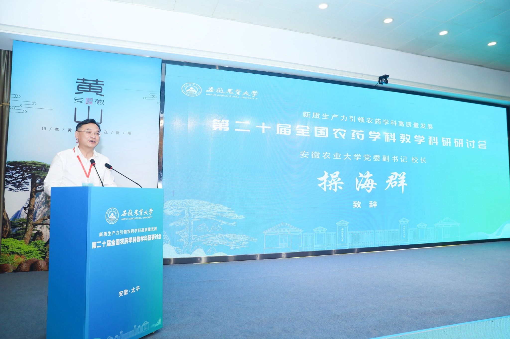 本网讯 7月24日-28日,由全国农药学科教学科研研讨会理事会主办、安徽农业大学承办,中水三立数据技术股份有限公司、安徽久易农业股份有限公司、安徽捷胜生物科技股份有限公司联合协办的第二十届全国农药学科教学科研研讨会在安徽太平召开。中国工程院院士钱旭红(线上)、陈剑平(线上)、宋宝安(线上)、康振生、柏连阳,农业农村部农药检定所所长黄修柱、安徽省农业农村厅副厅长潘鑫、黄山市副市长江卓琪、安徽省教育厅科研处处长梁祥君、淮北师范大学副校长李峰、黄山市黄山区委书记张旭,我校党委副书记、校长操海群,副校长吴祥为等出席会议。