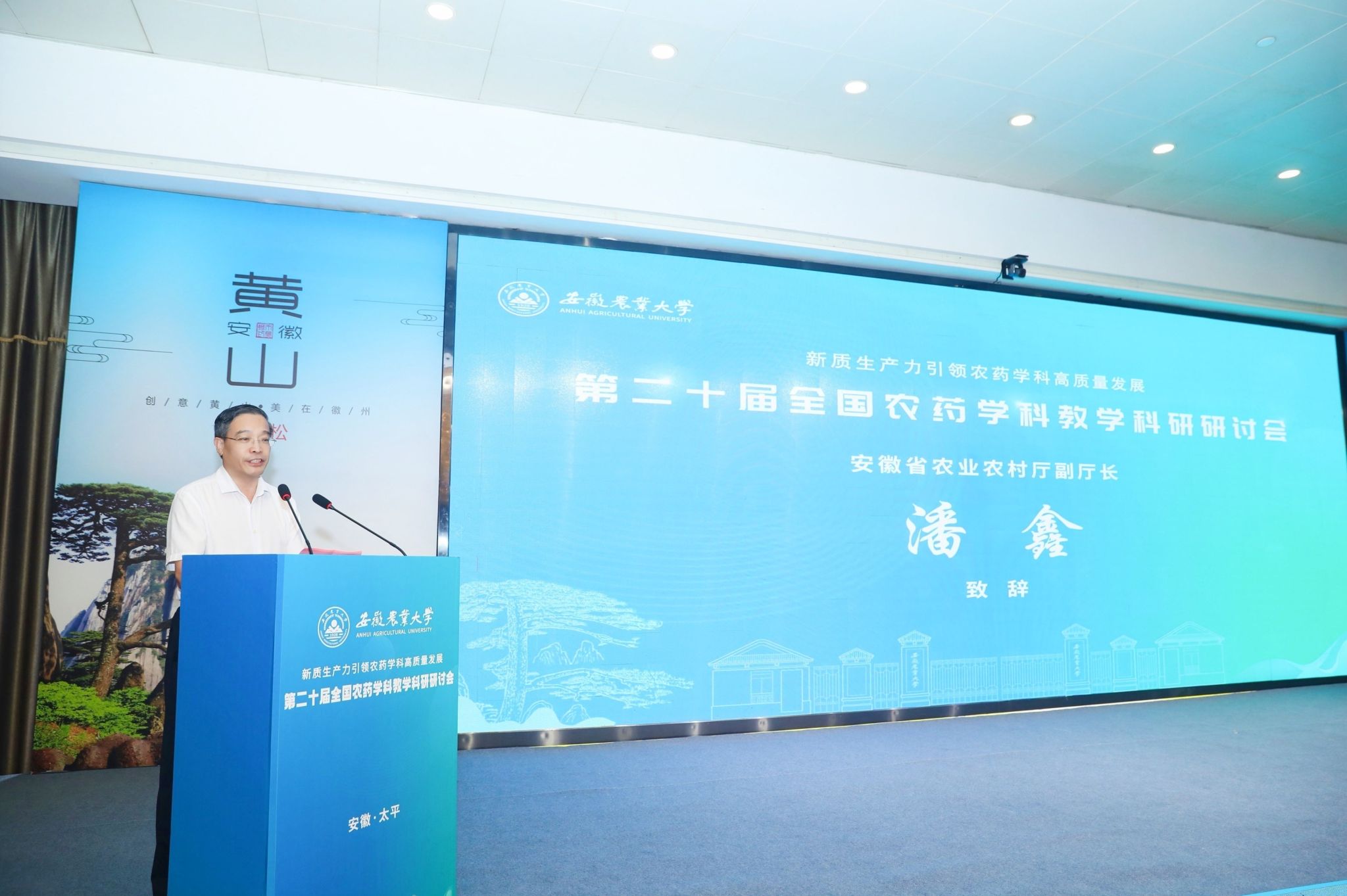 潘鑫对大会的召开表示祝贺,他介绍了我省深入贯彻习近平总书记关于“三农”工作重要论述的具体实践和取得成效,深入阐释了农业科技创新对乡村振兴的战略意义,希望本次研讨会能够助力安徽省农药产业高质量发展和农业绿色发展。