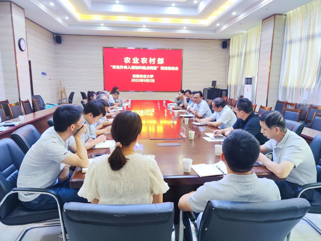 本网讯 为高质量完成农业农村部下达的“农业外来物种入侵物种重点调查”任务,我校于2022年9月2日,在植物保护学院召开了项目推进会。校党委常委、副校长操海群,校科技处、新农村发展研究院、生命科学学院、资源与环境学院、植物保护学院负责同志和项目组全体成员参加了会议。会议由新农村发展研究院副院长王华君主持。