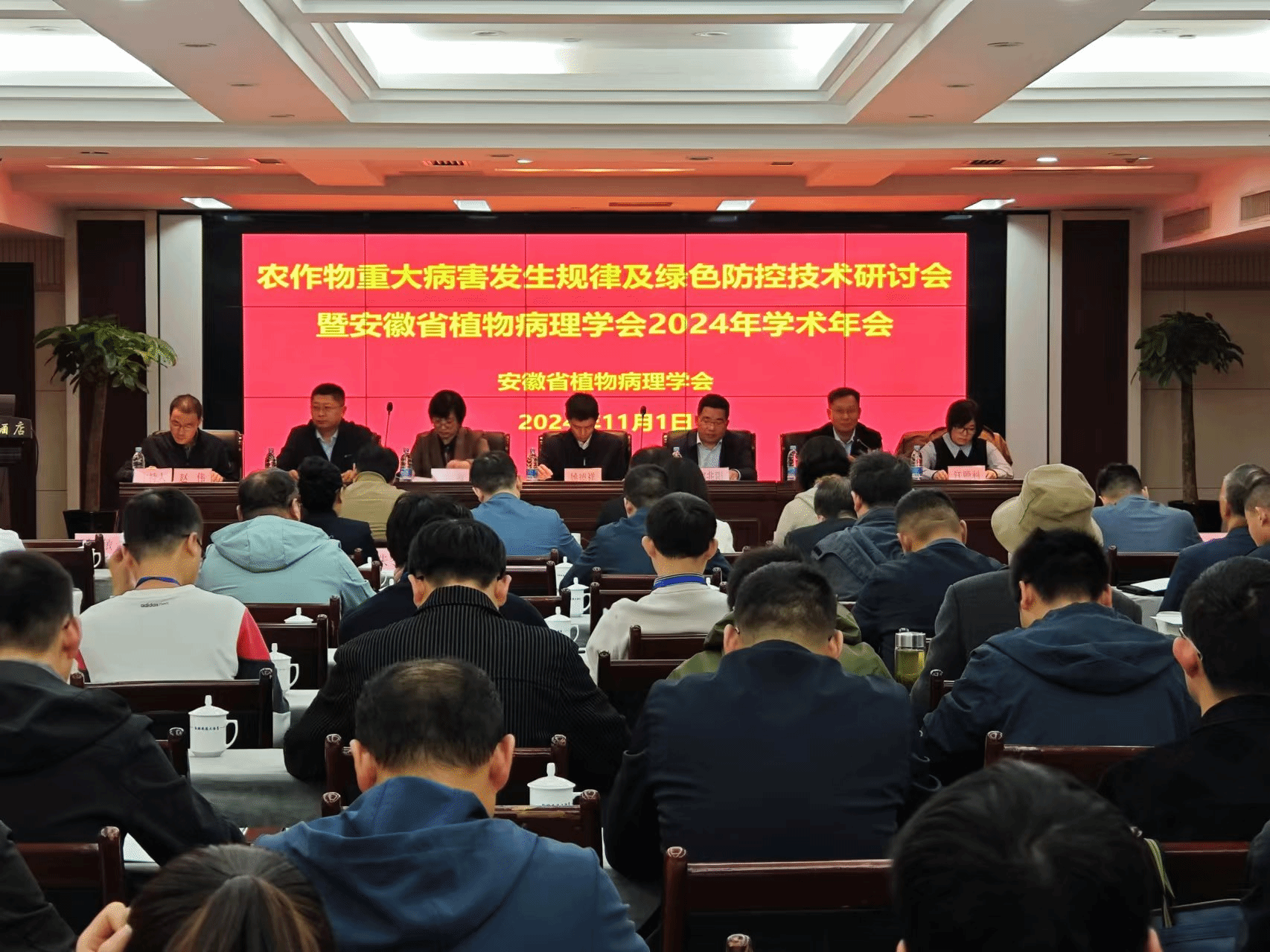 本网讯 2024年10月31日—11月1日,农作物重大病害发生规律及绿色防控技术研讨会暨安徽省植物病理学会2024年学术年会在合肥隆重召开。安徽省科学技术协会科学技术创新部部长姚德祥、植物保护学院党委书记刘柳、安徽省植物保护总站副站长郑兆阳等应邀出席。来自全省各地教学、科研、农技推广管理单位和农资企业的会员代表100余人参加大会。