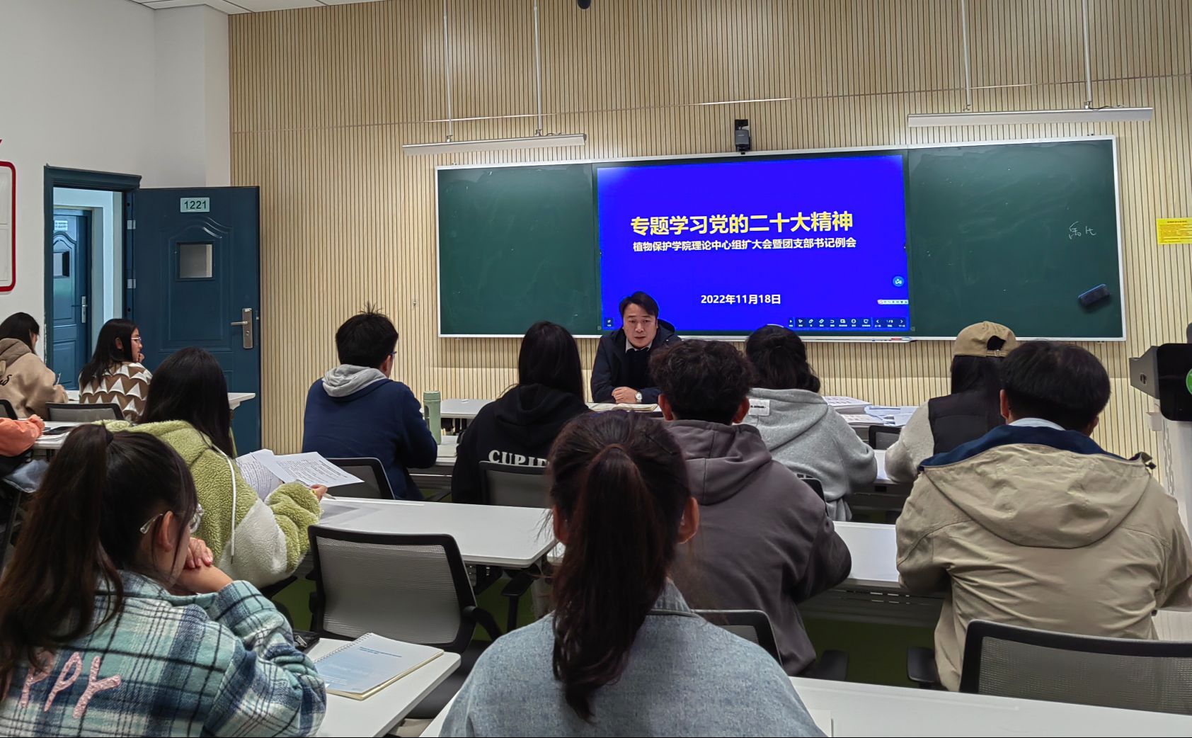 本网讯 11月18日,植物保护学院团委在中西部综合楼1221室举办理论学习中心组扩大学习会暨团干培训会议,专题学习党的二十大精神。学院党委副书记汪小强、院团委委员、团支部书记、分团校学员参加了会议。会议由院团委负责老师主持。