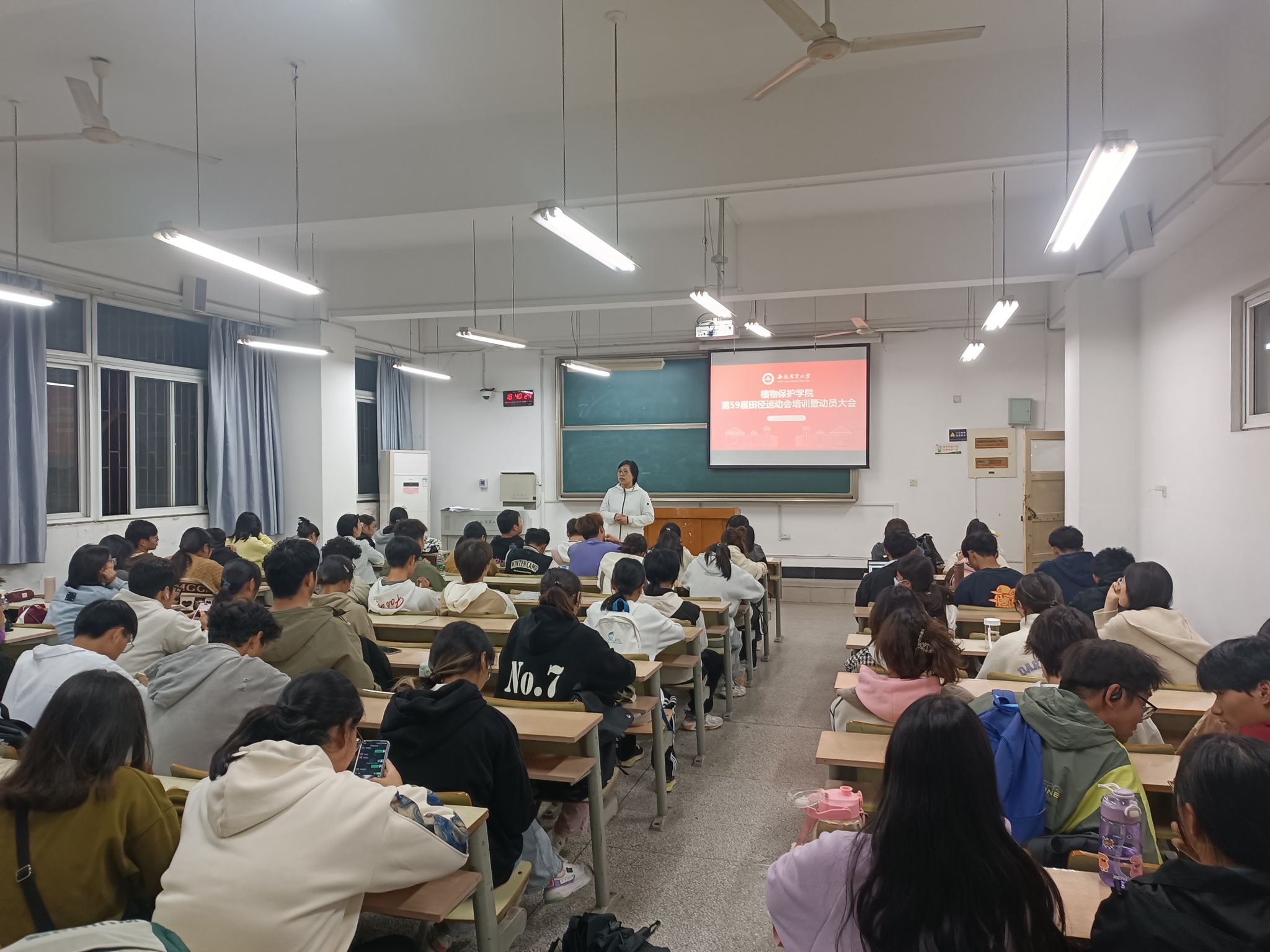 本网讯 10月22日,学院在博学楼125教室召开2024年秋季第59届田径运动会培训暨动员大会。学院党委书记刘柳作动员讲话,学院团委负责人、学生分会主席团、志愿活动中心和体育部等负责人以及全体运动员参加。