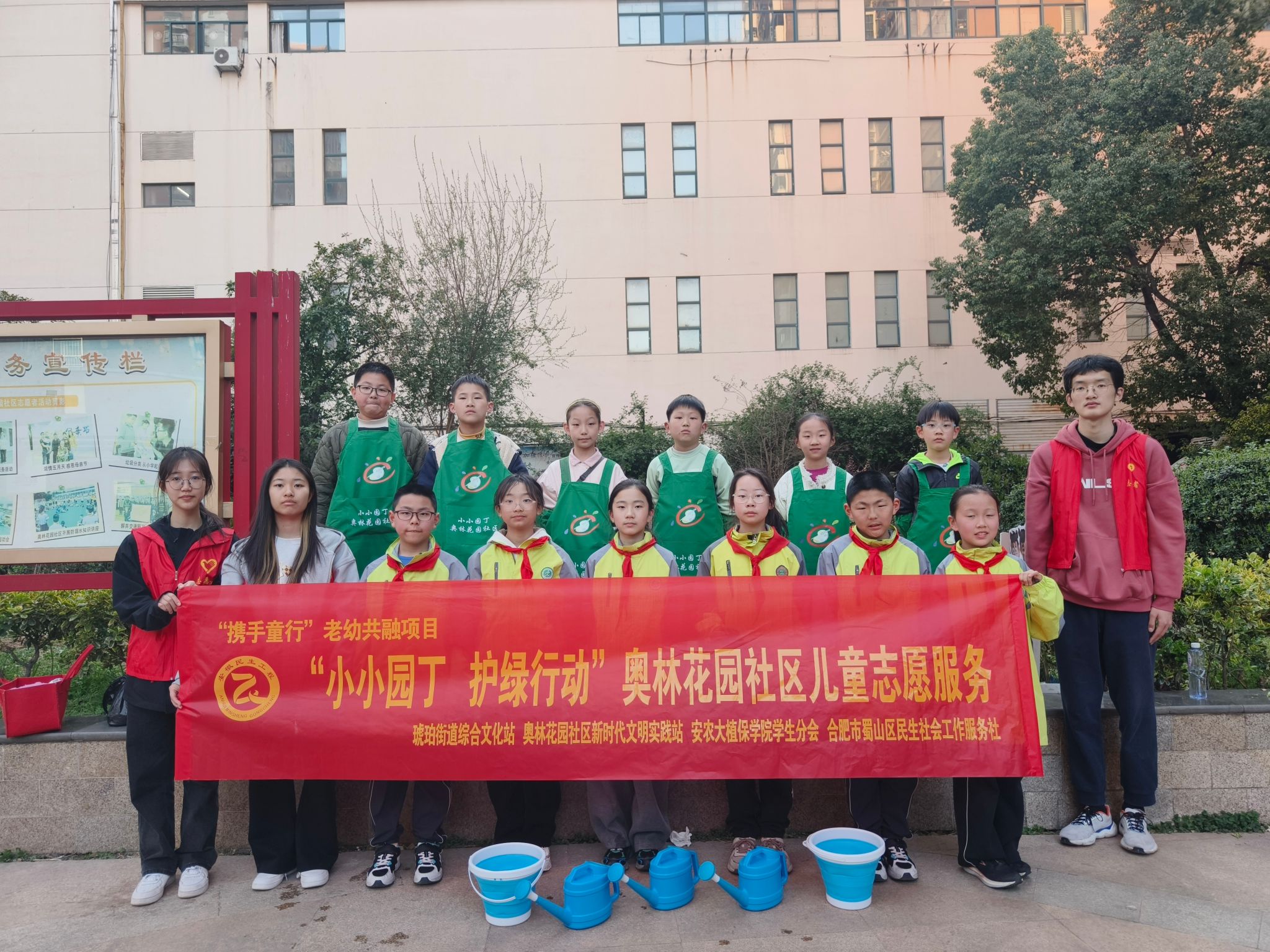 本网讯 为加强与社区的志愿服务对接,结合“学雷锋活动月”主题教育实践活动。3月21日下午,在明媚的春光里,植物保护学院学生分会组织志愿者们走进蜀山区奥林花园社区雍景苑,开展了一场别开生面的公益活动--“小小园丁 护绿行动”。