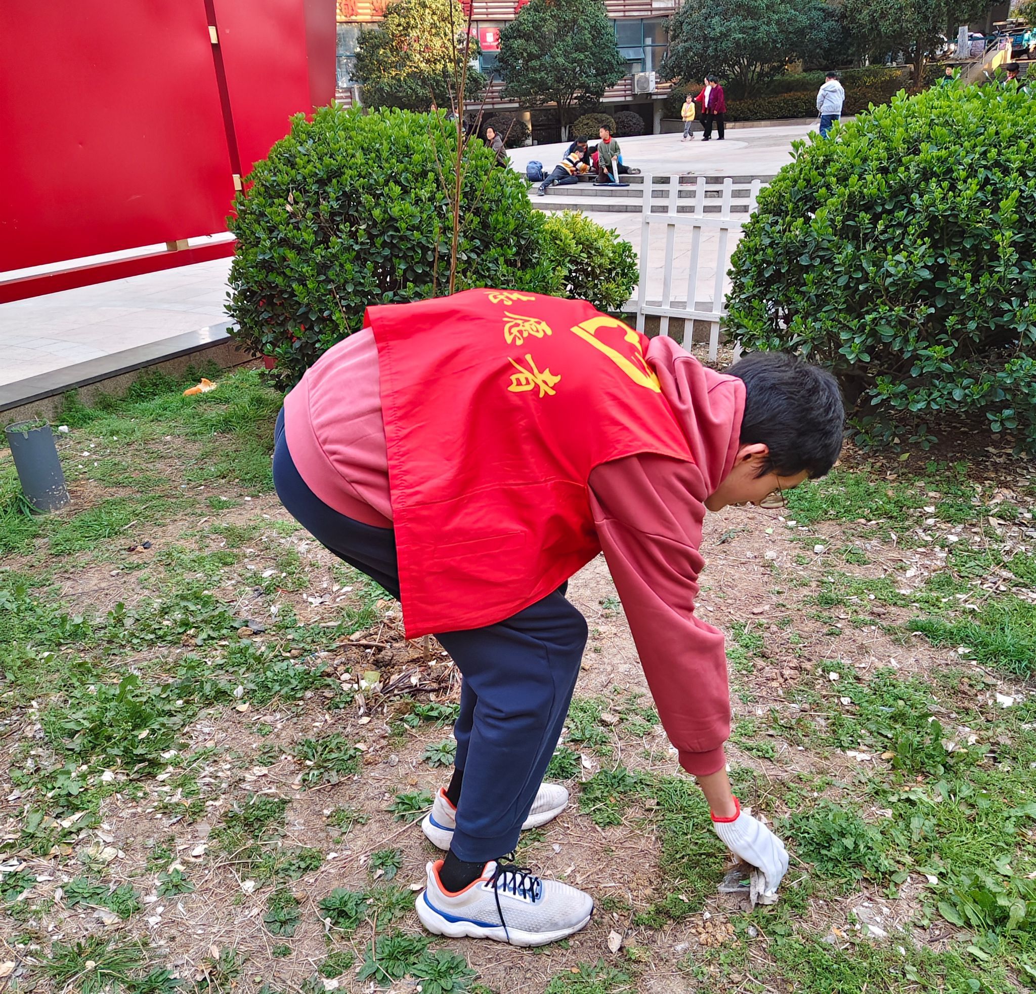 浇水环节结束后,就进入了保护环境行动。志愿者们为小朋友们发放小垃圾袋,大家一起投入到清理花园垃圾的工作中。小朋友们积极性高涨,不怕脏、不怕累,沿着花园的小路、花丛,仔细搜寻着每一处垃圾。有的小朋友蹲在草丛边,用稚嫩的小手捡起烟头;有的小朋友认真地将地上的纸屑一点点拾起;还有的小朋友互相协作,清理藏在角落里的包装袋。志愿者们也穿梭在小朋友中间,引导他们正确分类垃圾,并适时给予鼓励和帮助。在大家齐心协力的努力下,花园里的垃圾逐渐被清理干净,小花园变得整洁又美丽。