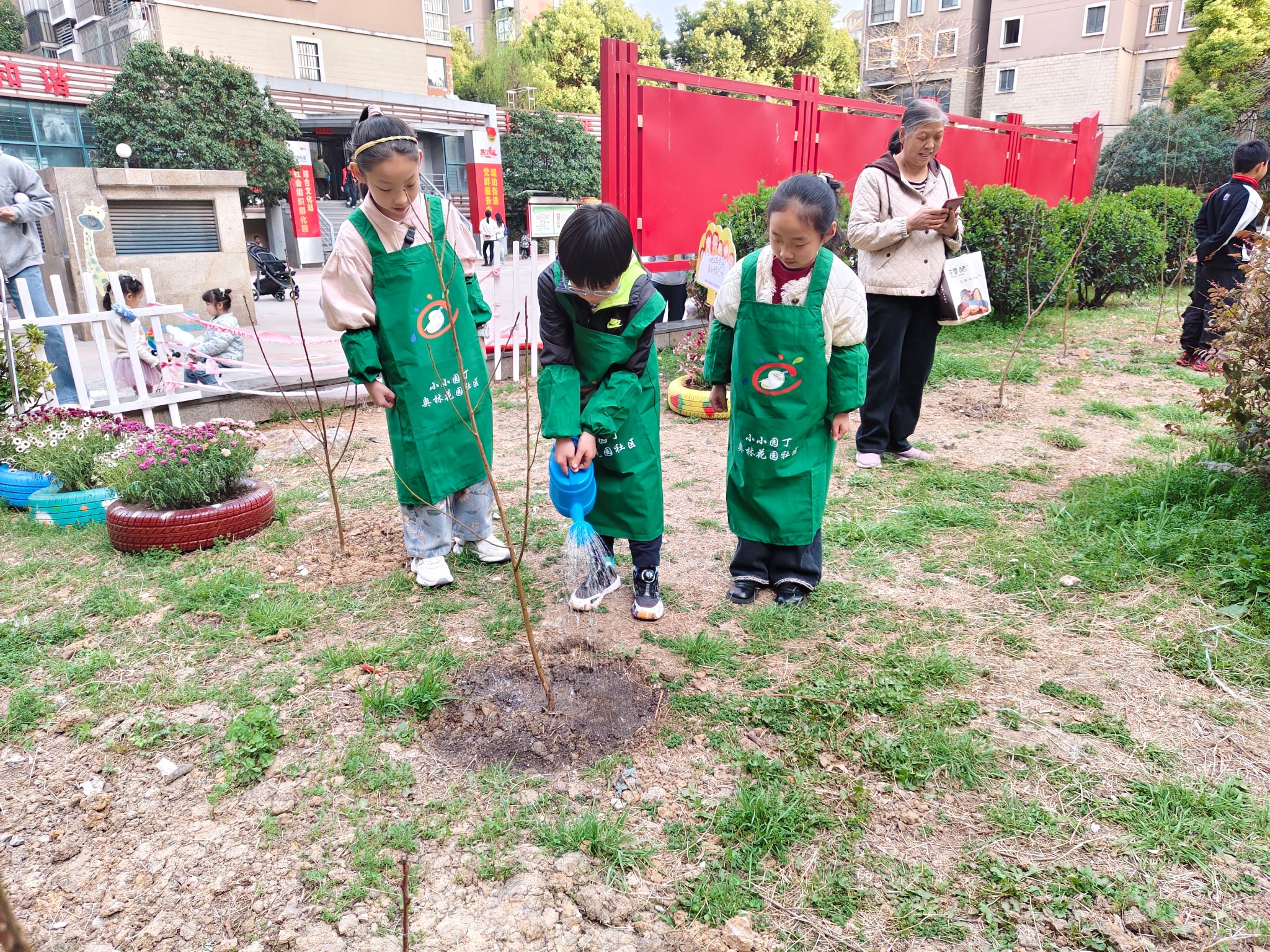 整个活动过程中,欢声笑语回荡在花园的每个角落。对于志愿者们来说,这次活动不仅是一次公益行动,更是一次将理论知识运用到实践、服务社区的宝贵经历。而小朋友们在轻松愉快的氛围中,学到了种树知识,体验了浇水和捡垃圾的劳动过程,环保的种子已在他们心中种下。