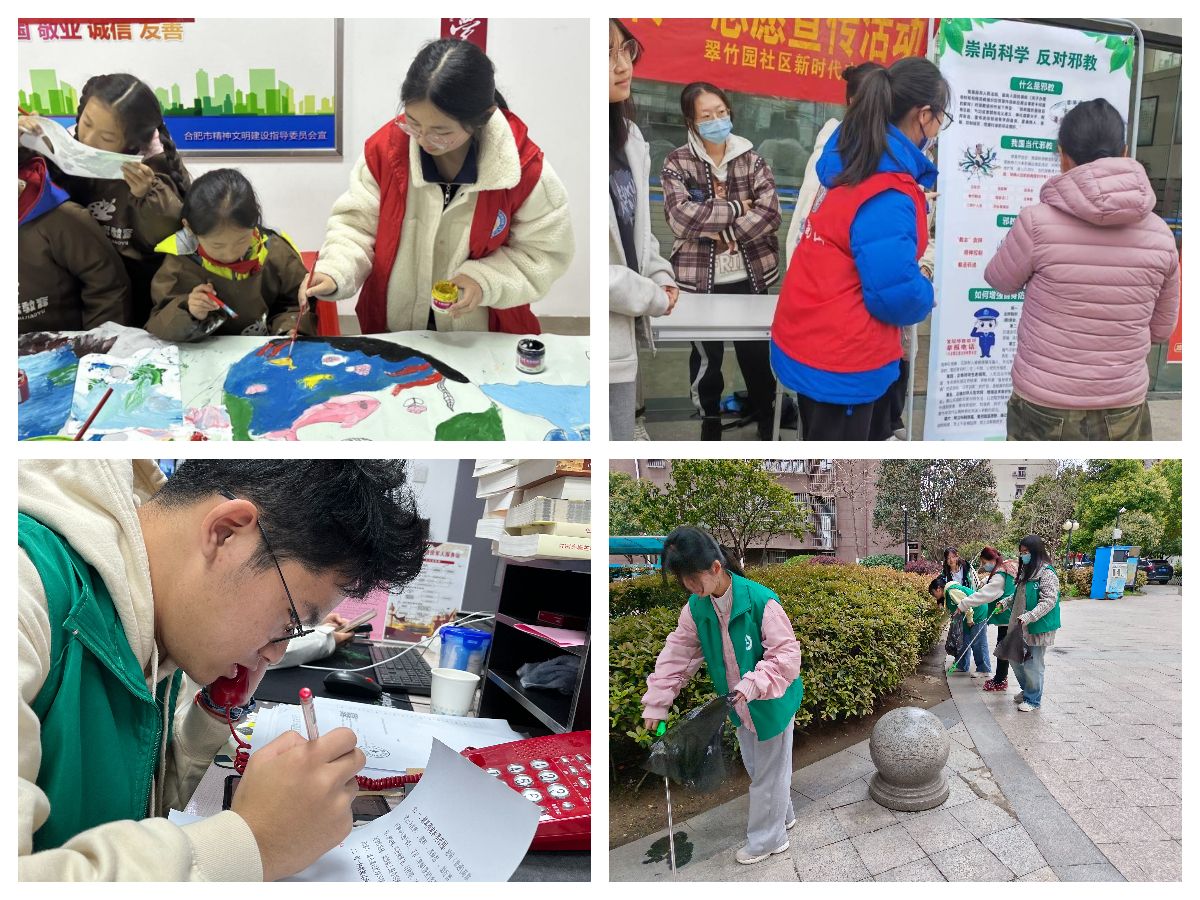 读“社会大书”,启动社区实践计划。3月以来,学院各班级先后分别走进安农大地铁站,引导文明出行;走进安医附院开设“彩虹小课堂”,关爱残疾儿童;走进飞虹社区、奥林花园社区开展社区垃圾清理;走进翠竹园社区开展“崇尚科学”主题宣传教育;走进安农社区,开展助残辅助器具需求对接服务;走进琥珀潭社区,开展“珍爱水资源,童心绘长卷”世界水日主题活动……同学们在服务社会、奉献社会中践行社会主义核心价值观。