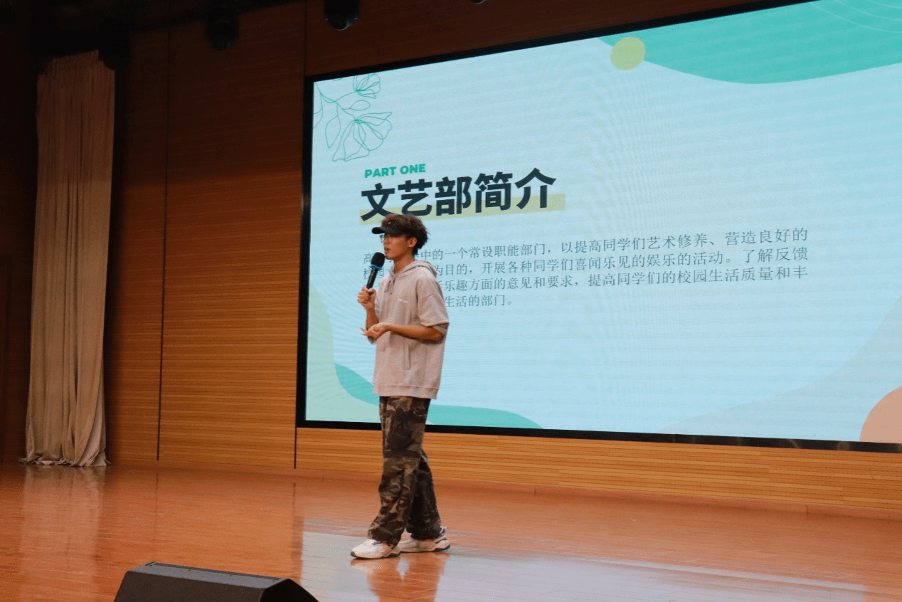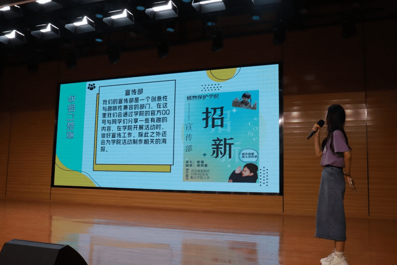 活动间隙,院学生组织各部门同学上台介绍部门情况,台下同学认真听讲,积极了解自己感兴趣的部门。
