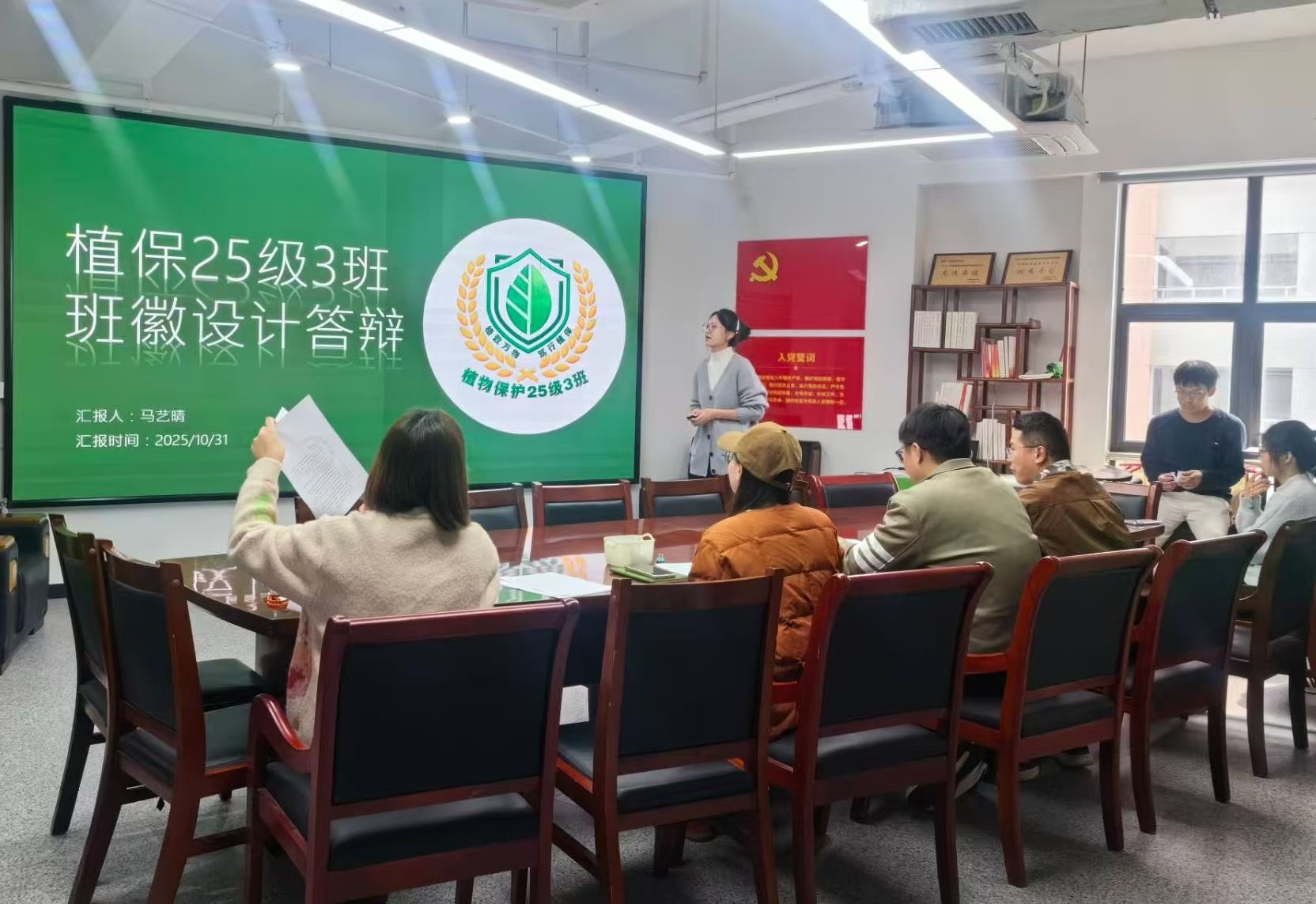 本网讯 为进一步加强学生对班级的认同感和归属感,展现2025级新生班级的青春风采,植物保护学院于10月15日-31日举办了“‘植’青春,筑梦想”新生班徽设计大赛。10月31日下午,学院在勤业楼1501室组织展开了决赛,部分辅导员及各班级学生代表参加。