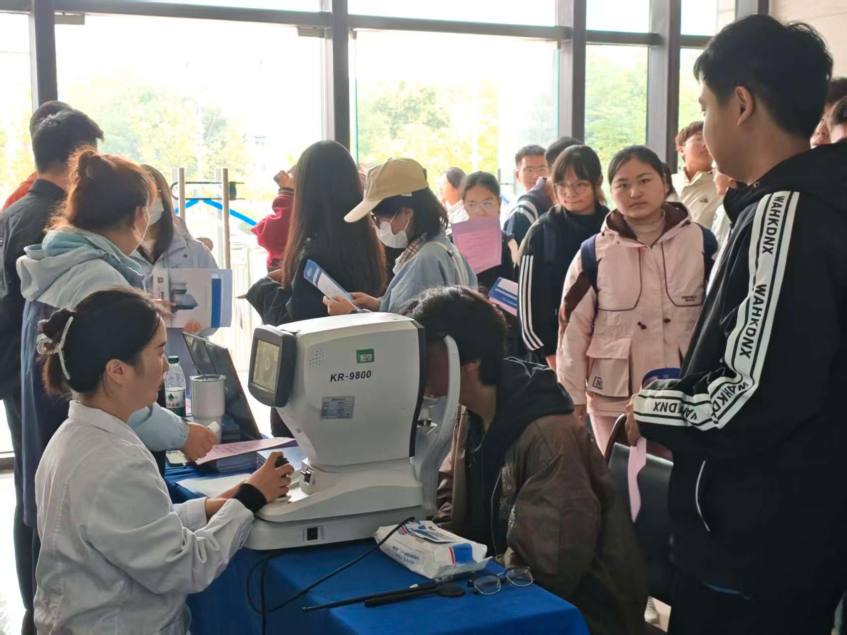 讲座结束后开展了校园义诊活动。为保障义诊效率与服务质量,植物保护学院提前做好了周密部署,安排多名志愿者做好现场秩序的引导。同学们有序排队领取健康登记表,依次进行视力检查、眼底检查等项目。检查过程中,眼科医生团队耐心细致地为每位学生进行检查,详细询问用眼习惯和眼部不适症状,并针对近视、远视、干眼症等常见眼部问题,提供了专业的治疗建议和防护指导。对于需要进一步诊疗的学生,医生还贴心告知了后续就医的注意事项。