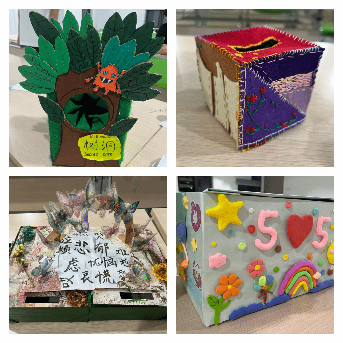 “心之笔触 绘画心灵”情绪盒子设计大赛。坚持以美润心、以美韧心,利用身边的物品,比如快递盒,纸杯子等,利用颜料、纸板、剪刀等,自由地进行DIY绘画创作,绘出自己的心情,绘出自己的感受。不同的色彩代表不同的心情,以此来表达自己的内心世界,用画笔描绘生命蓝图,构建心灵世界,设计情绪回收盒,做情绪的主人。