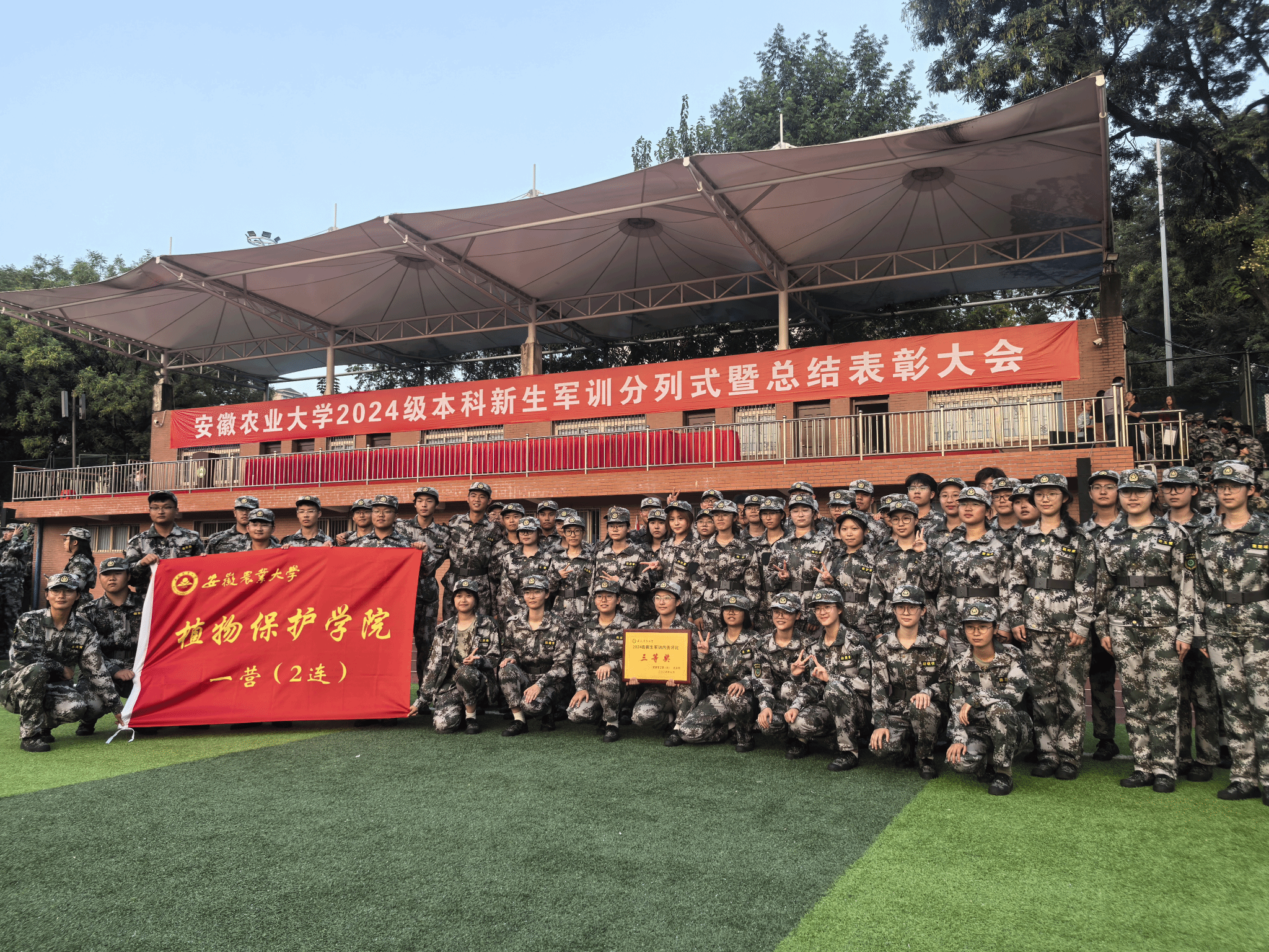 学院在2024级本科生军训工作中获佳绩 发布时间:2024-09-14 浏览次数: 本网讯 为期两周的2024级本科新生军训期间,植保本科新生们倾情投入、刻苦训练,在学校本科新生军训分列式暨总结表彰大会中,摘得新生内务评比三等奖、军训学生标兵5人。