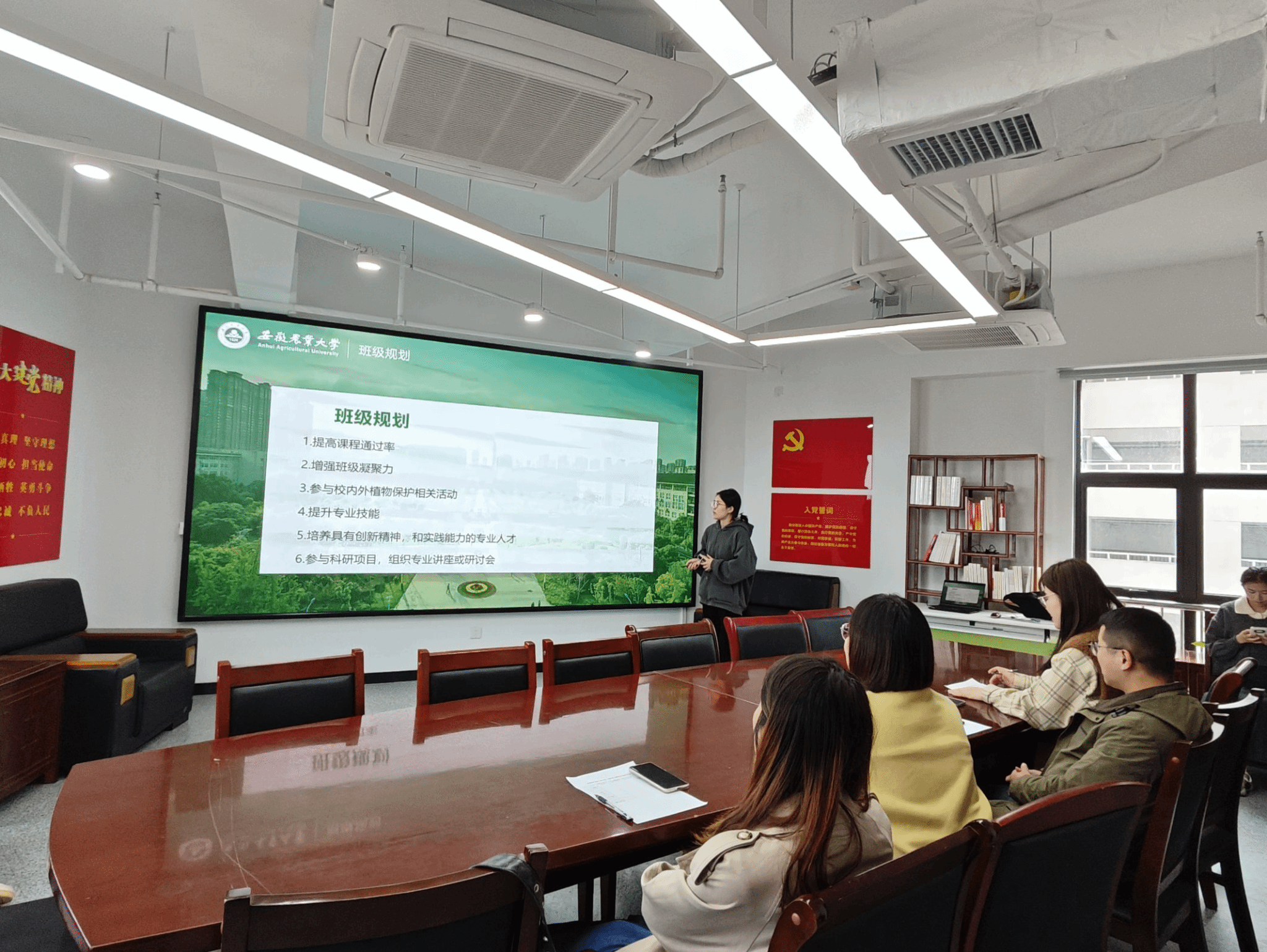 本网讯 为进一步加强同学们对班级的认同感和归属感,增强班级凝聚力,培育良好的班风学风,展现2024级新生班级的风采特色,植物保护学院于10月15日至11月1日举办了“‘植’青春,筑梦想”班徽设计大赛。11月1日下午,学院在研究生公寓1501会议室组织班徽设计大赛决赛,辅导员丁放、裴志远、曹蓓蓓、邢文静及各班级学生代表参加。