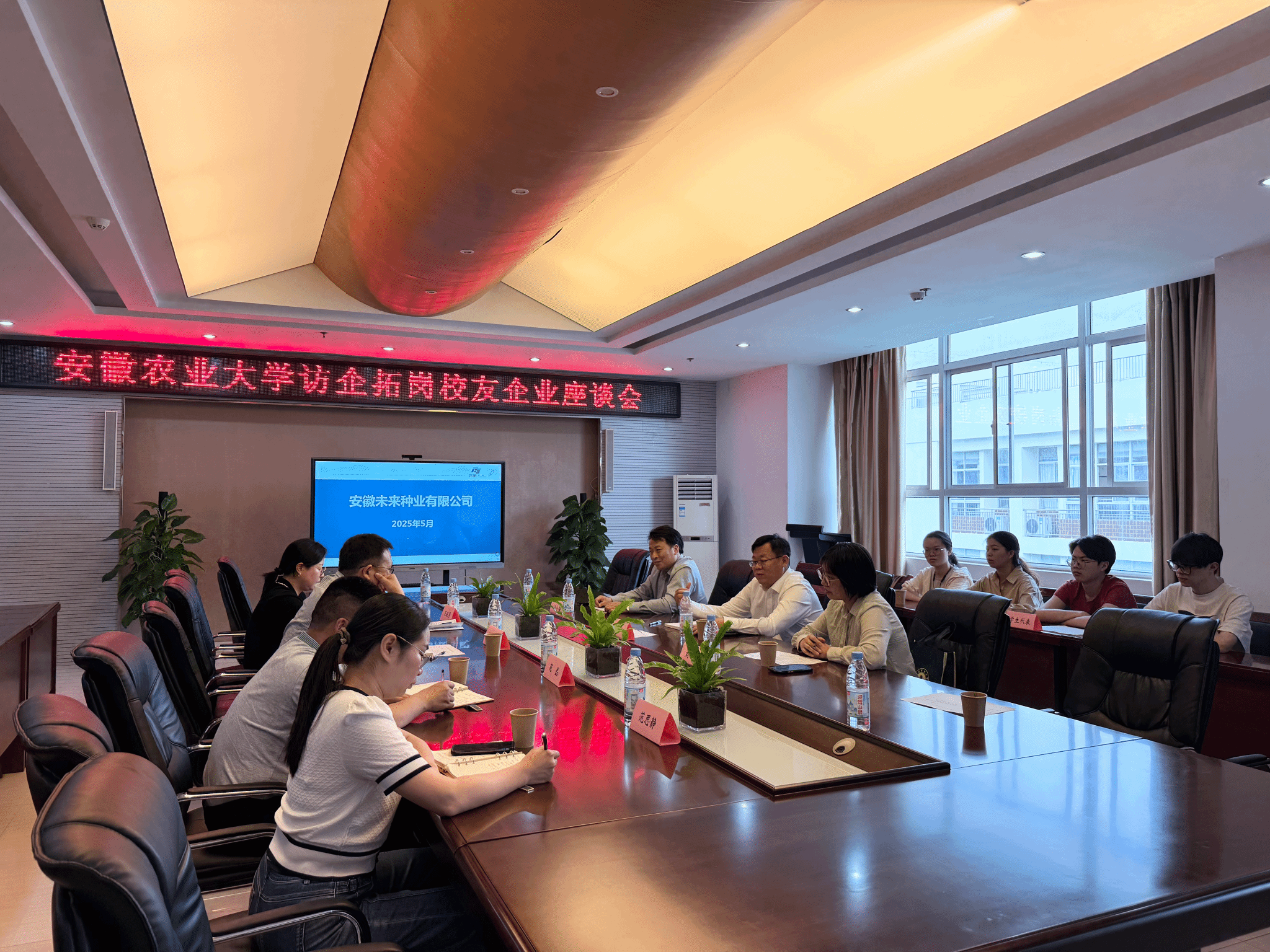 江海洋对安徽未来种业有限公司的发展成效表示祝贺,对安徽未来种业有限公司对我校毕业生的信任表示感谢。希望进一步加强与校友企业之间的沟通合作,并期待校企双方在人才培养、实习实训、就业创业等领域加强合作,输送更多优秀人才,实现互利共赢。