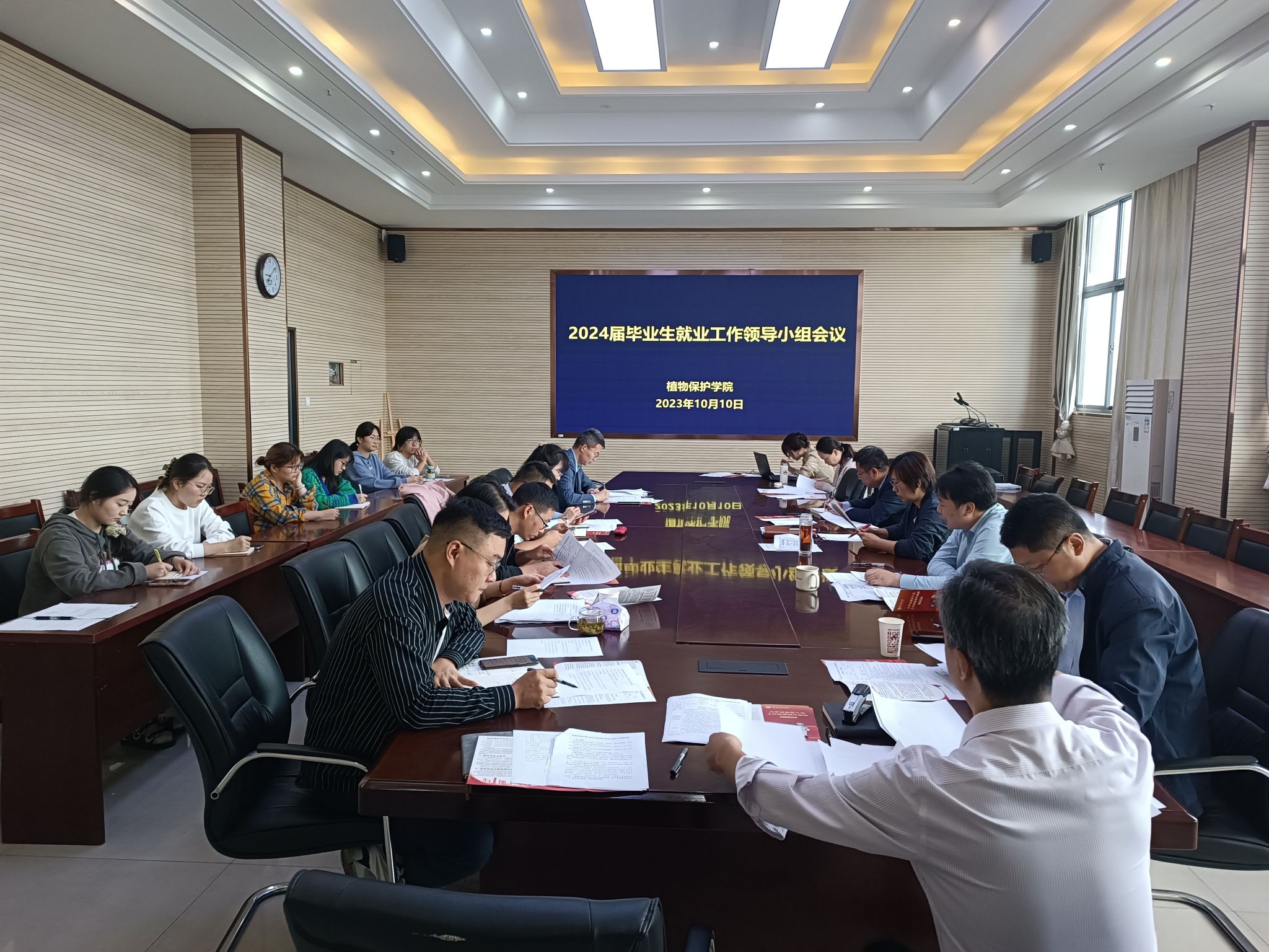 本网讯 10月10日,植物保护学院在1213会议室召开2024届毕业生就业工作领导小组会议。学院党政领导、系主任、毕业班辅导员班主任、招生就业联络员以及研究生、本科生毕业班级学生联络员参加会议。会议由学院党委副书记、纪委书记、副院长汪小强主持。