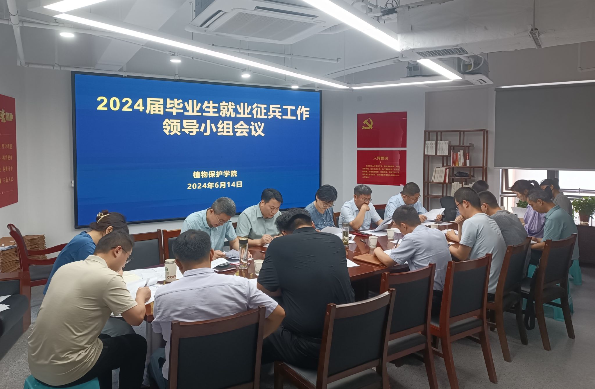 本网讯 6月14日,植物保护学院在研究生公寓B楼1501会议室召开2024届毕业生就业征兵工作领导小组会议。学院党政领导、系主任、毕业班辅导员、教学秘书、研究生秘书参加会议。