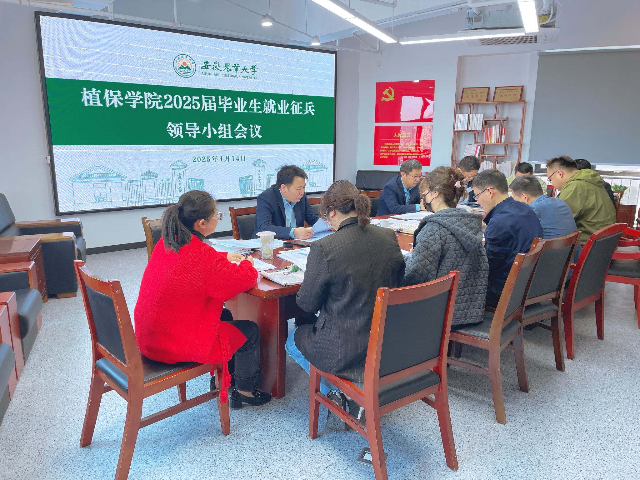 本网讯 4月14日,学院在勤业楼1501会议室召开2025届毕业生就业征兵领导小组会议。学院党政领导、系主任、毕业班辅导员参加会议。会议由学院党委副书记汪小强主持。