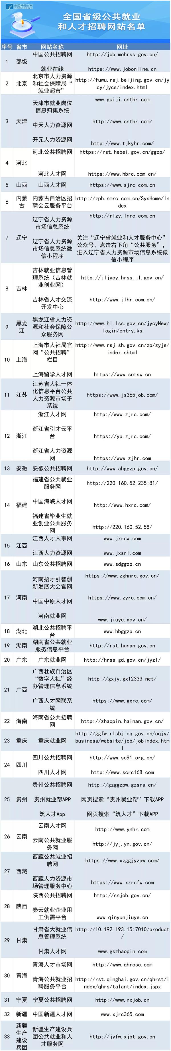 @高校毕业生,全国省级公共就业和人才招聘网站名单来了