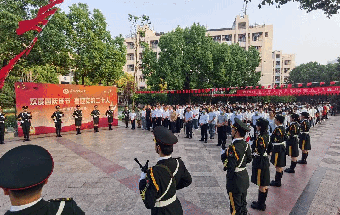 组织参加升旗仪式。10月1日早晨7点,学院组织学生参加学校“欢度国庆佳节 喜迎党的二十大”主题升旗仪式。在庄严的国歌声,升旗手将鲜艳的五星红旗缓缓升起,在场师生肃立、行注目礼、齐唱国歌,共同庆祝祖国73周年华诞。