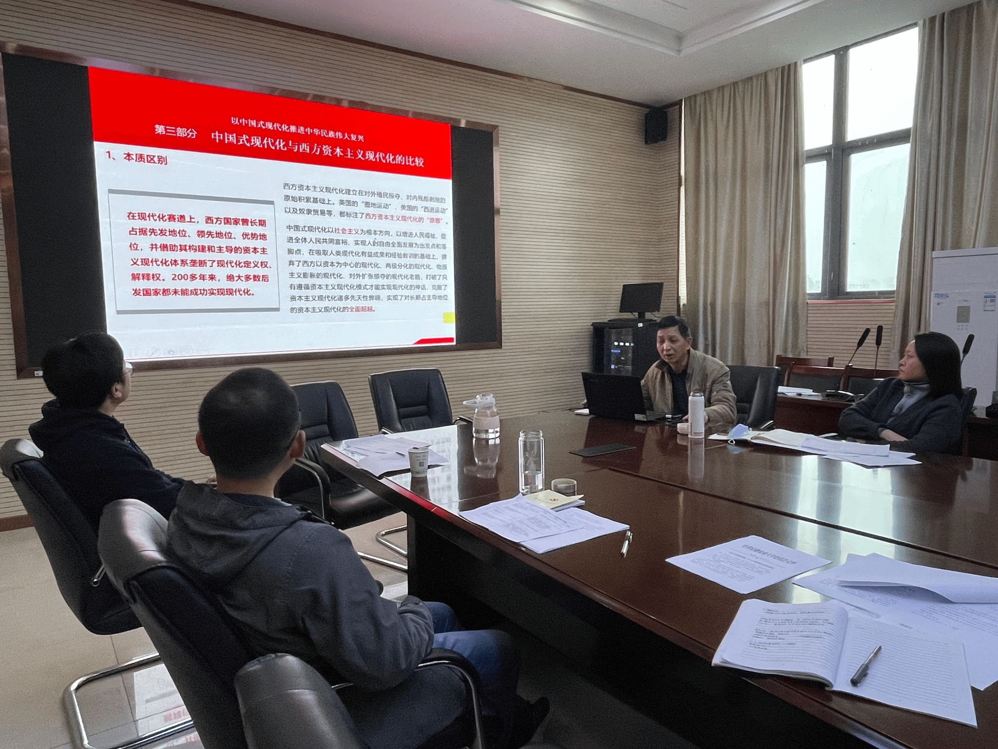 最后,张平以《对中国式现代化的认识与体会》为题给与会人员作党的二十大精神的专题宣讲。他以学习领会党的二十大精神的背景意义为切入点,从“‘中国式现代化’发展”“中国式现代化的概念”“中国式现代化与西方资本主义现代化的比较”“中国式现代化的重大原则和战略安排”“ 我们应该怎么办?”五个方面阐述了中国式现代化的发展历程、本质要求和深远意义。他强调,要提高政治站位,以“八个深刻领会”“七个聚焦”为重点,按照校院两级党委工作部署,迅速在全院上下掀起学习宣传贯彻的热潮,教育引导全体师生切实把思想和行动统一到党的二十大精神上来,把智慧和力量凝聚到党的二十大确定的各项任务上来,为特色鲜明的高水平农业大学建设作出新的更大贡献。(作者:丁放;一审:丁放;二审:汪小强)