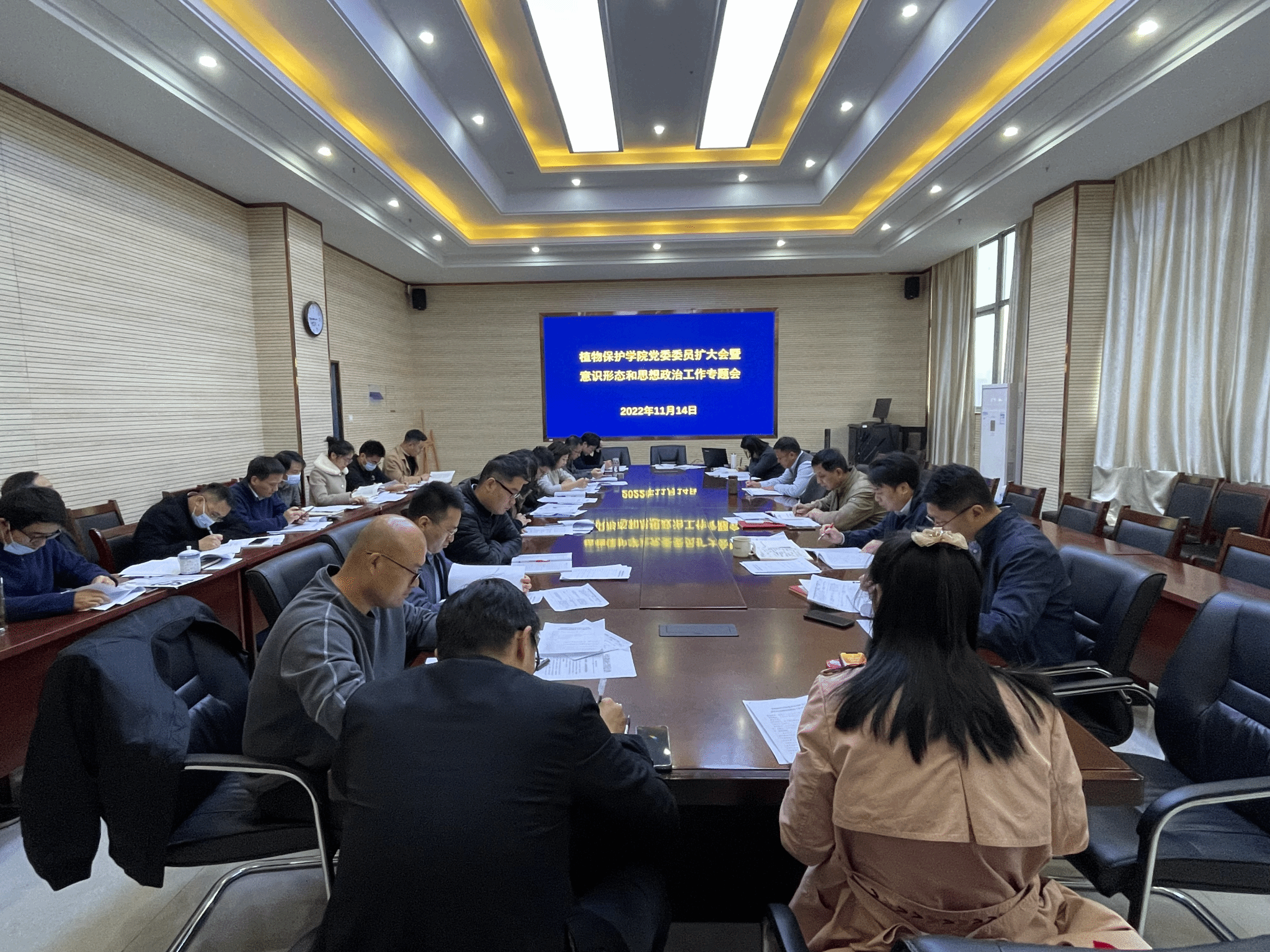 本网讯 11月14日,植物保护学院在中西部楼1213会议室召开党委委员扩大会暨意识形态和思想政治工作专题会议。院党委委员,教工党支部书记、宣传委员,学生党支部书记、全体本科生辅导员、班主任,研究生班主任,教学秘书、科研与研究生秘书参加会议。会议由院党委书记张平主持。
