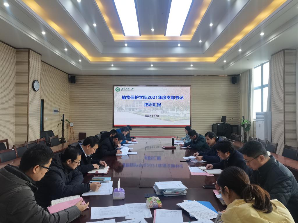 本网讯 1月7日下午,植物保护学院在1213会议室开展2021年度支部书记述职评议考核工作。学院领导班子、各支部书记、教师代表参加会议。会议由学院党委书记张平主持。