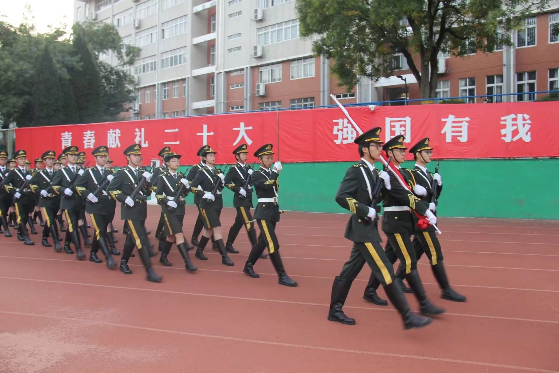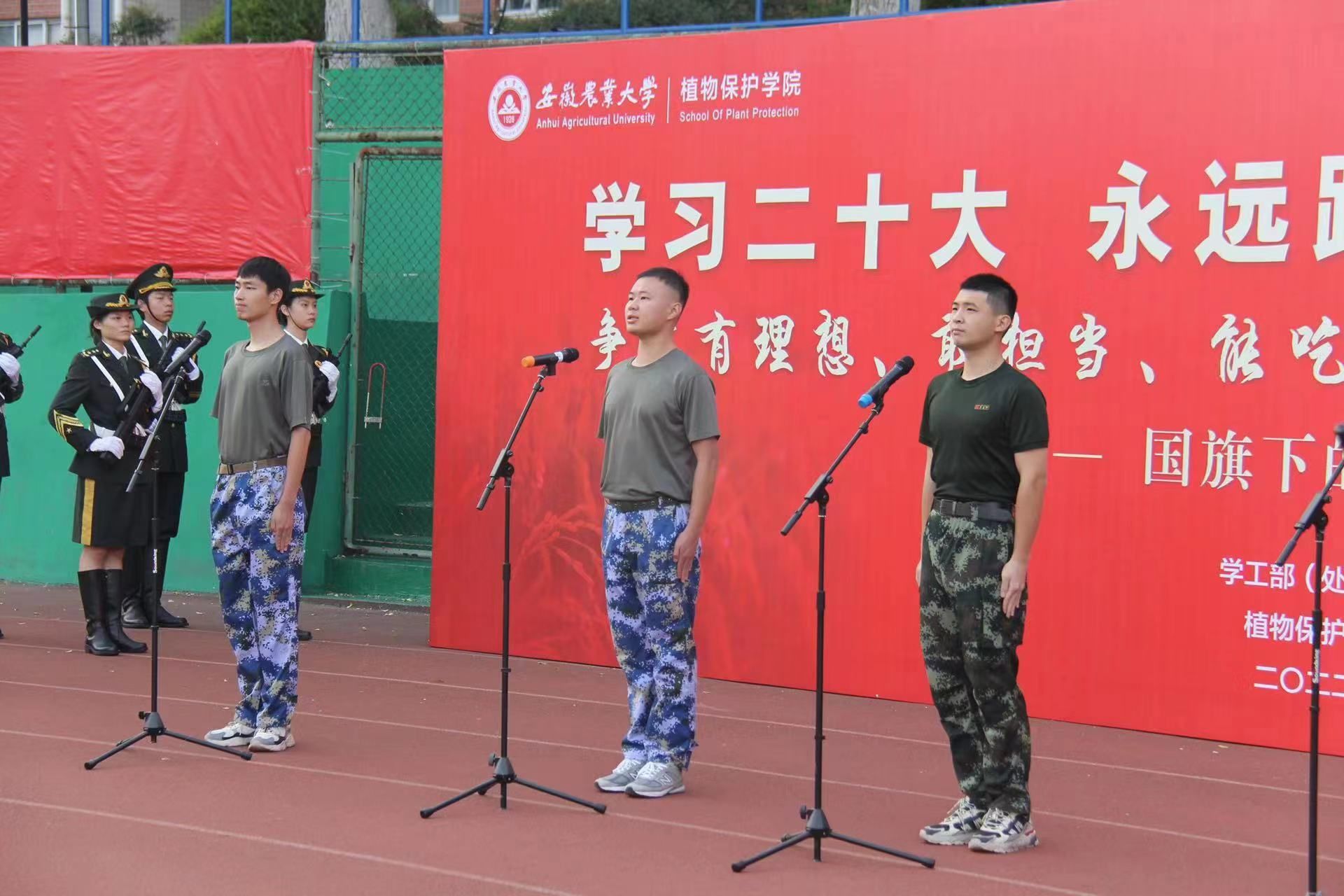 随后,8名新生代表带来了“红色家书”经典诵读活动,以“故事”的形式将红色人物、红色文化传承诵读,引导同学们从百年党史中汲取前行力量,不断厚植爱党爱国爱社会主义情感,不断坚定永远跟党走信仰信念。诵读后,3名新生退役士兵喊着响亮的口号,踏上整齐的步伐跑步向前,以军人的姿态向在场的师生郑重宣誓,展现了退伍士兵的军人本色和顽强的意志品质。